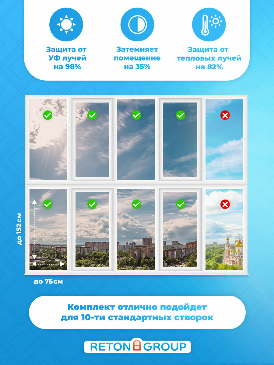 СохранитьПленка на окна от солнца. Пленка солнцезащитная на окно самоклеющаяся Bronze 10 Reton Group (бронзовая): 152x75см - 10 шт интересное: