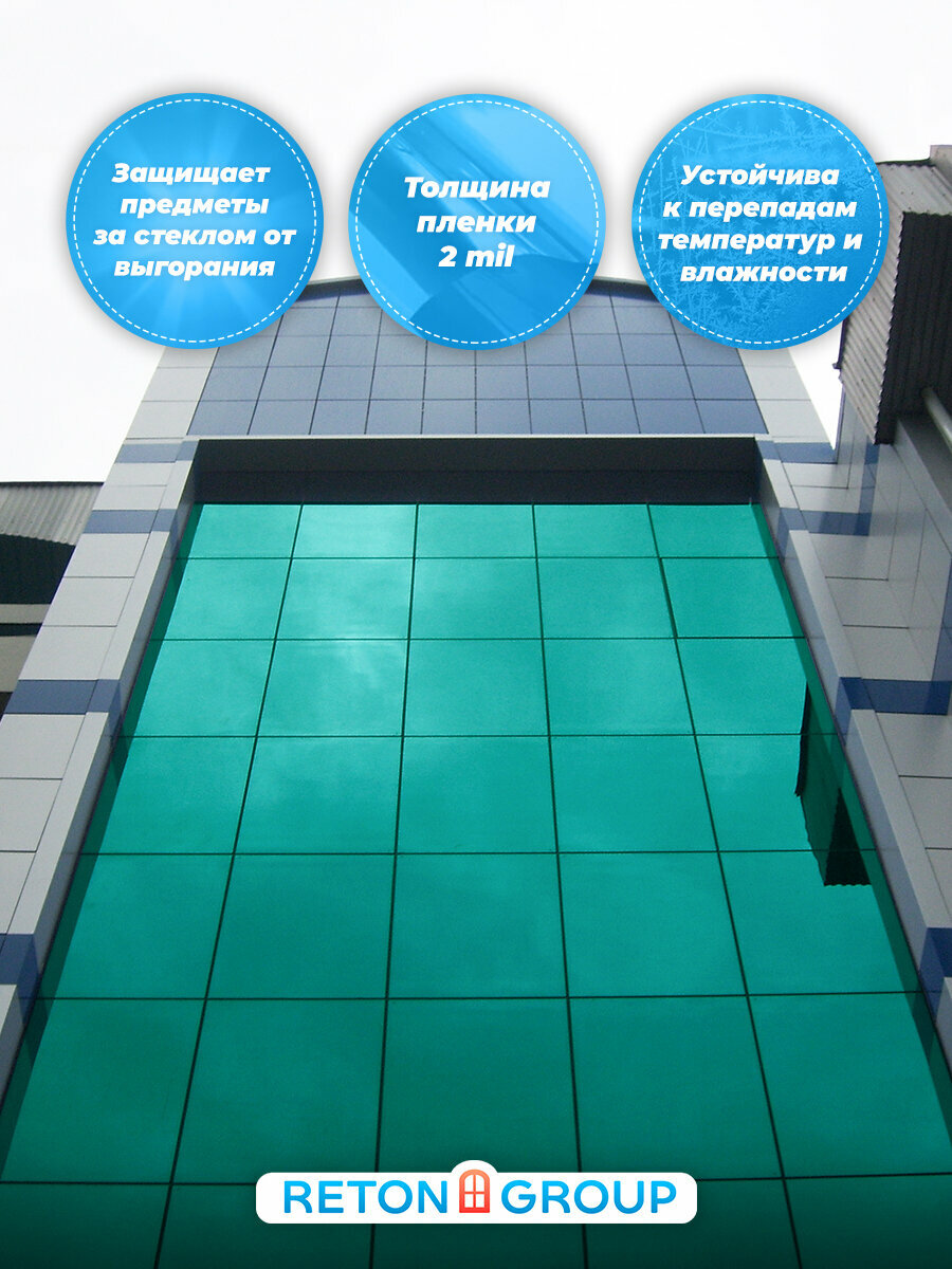 Пленка солнцезащитная для окон. Зеркальная пленка на окна Green 15 Reton Group : 100х152 см