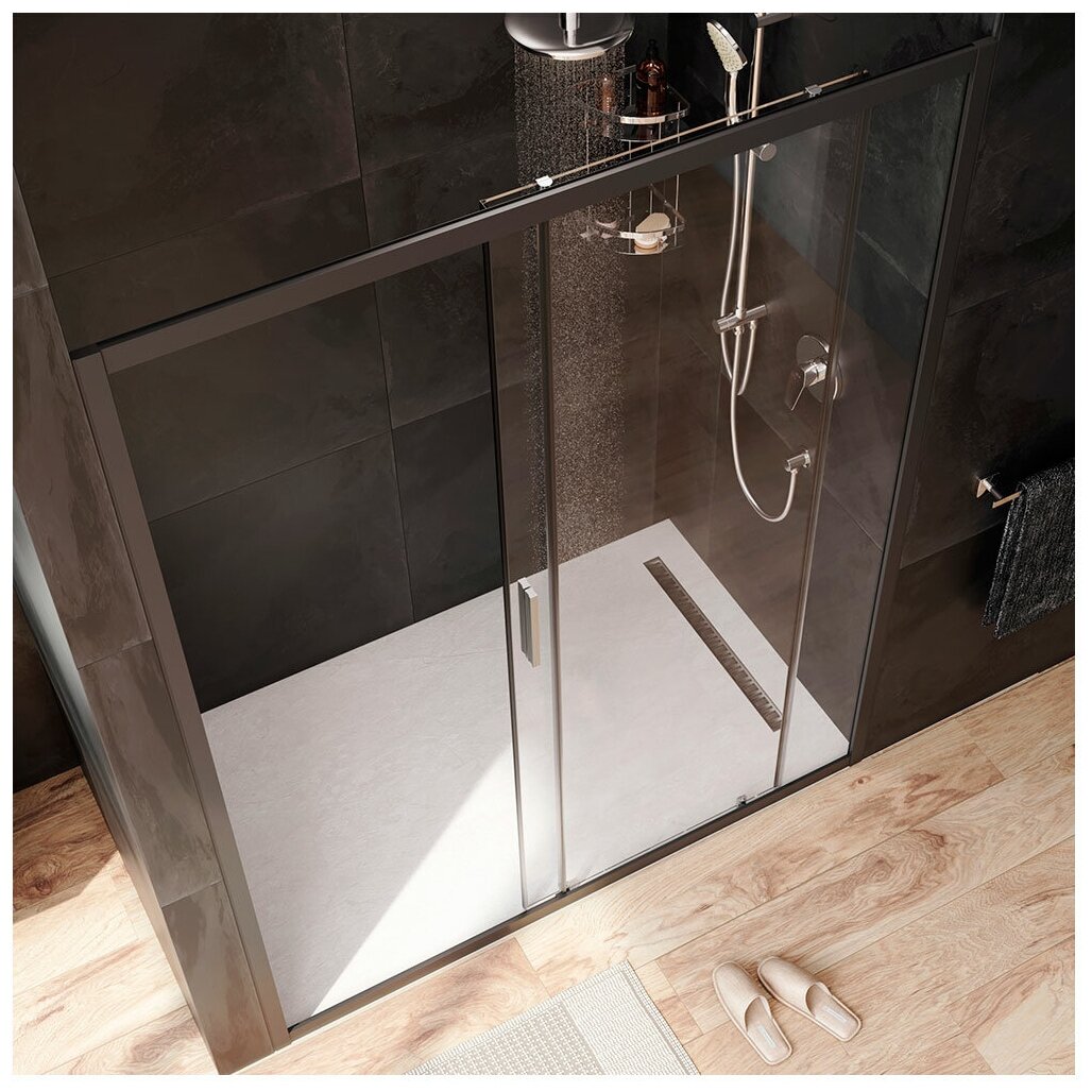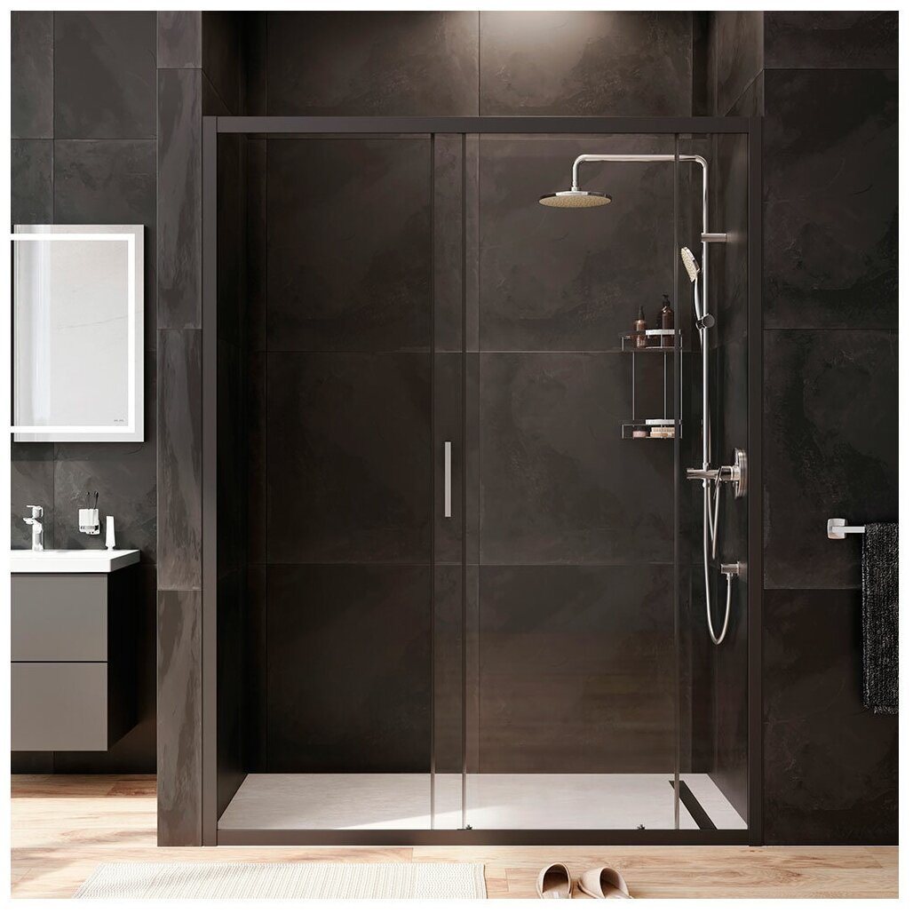 Дверь душевая в нишу AM.PM Gem Solo W90G-150-1-195BT раздвижная, 150х195, стекло прозрачное, профиль черный матовый интересное:
