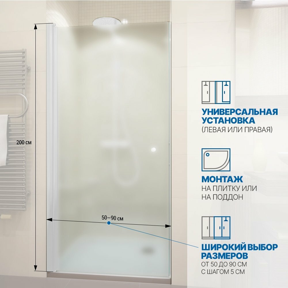 Дверь в душевую нишу GWMPKB020D601T 50x200 см, цвет фурнитуры хром матовый, цвет стекла матовый, стекло закаленное 6 мм, открывание двери левое / правое