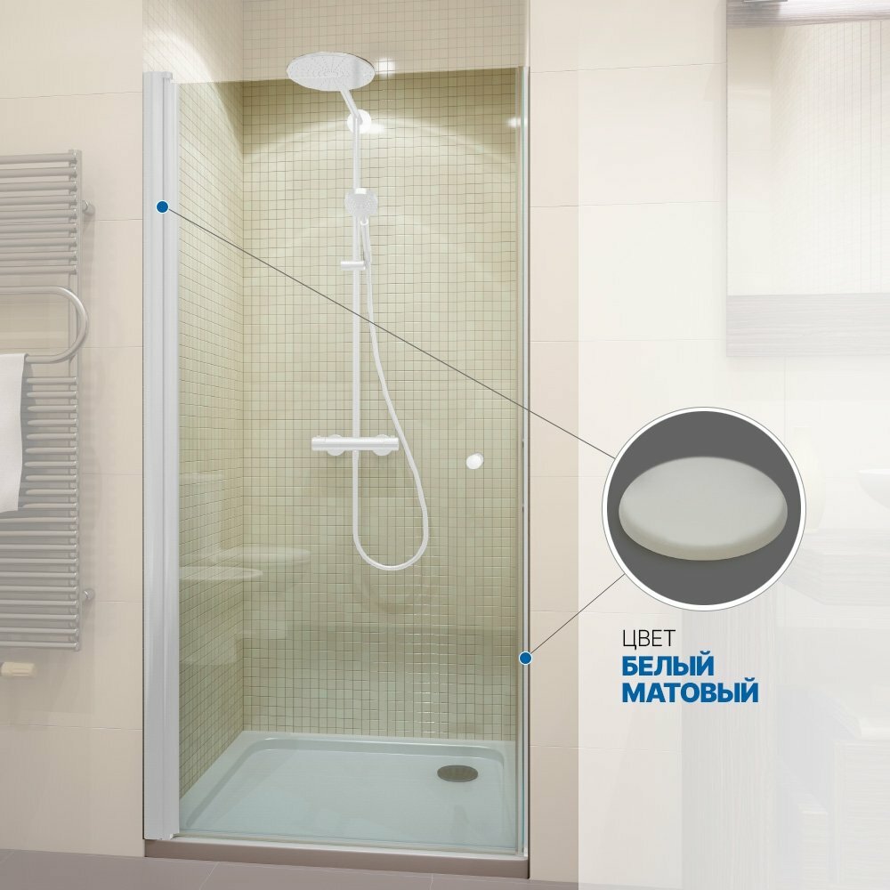 Дверь в душевую нишу GWMPKB020D601T 85x200 см, цвет фурнитуры белый матовый, цвет стекла матовый, стекло закаленное 6 мм