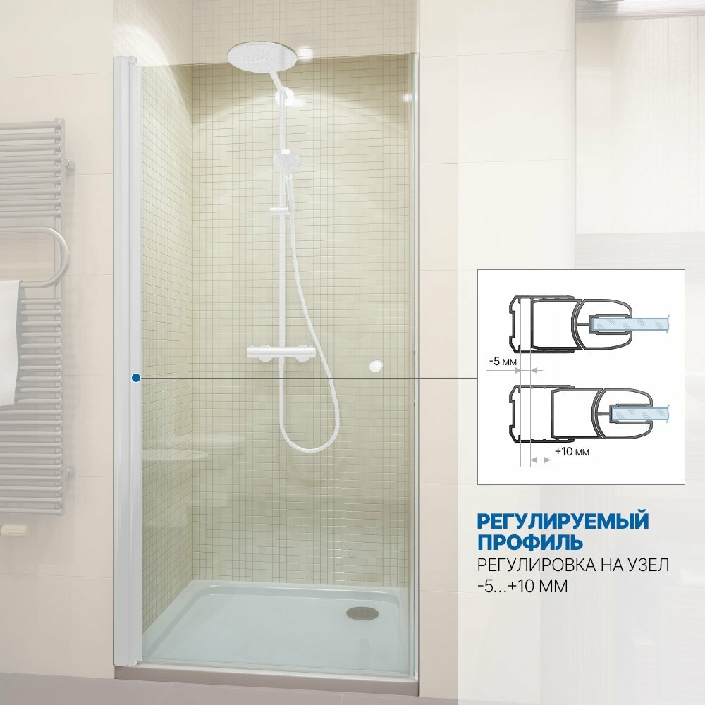 Дверь в душевую нишу GWMPKB020D601T 85x200 см, цвет фурнитуры белый матовый, цвет стекла бесцветный, стекло закаленное 6 мм, открывание двери левое / правое