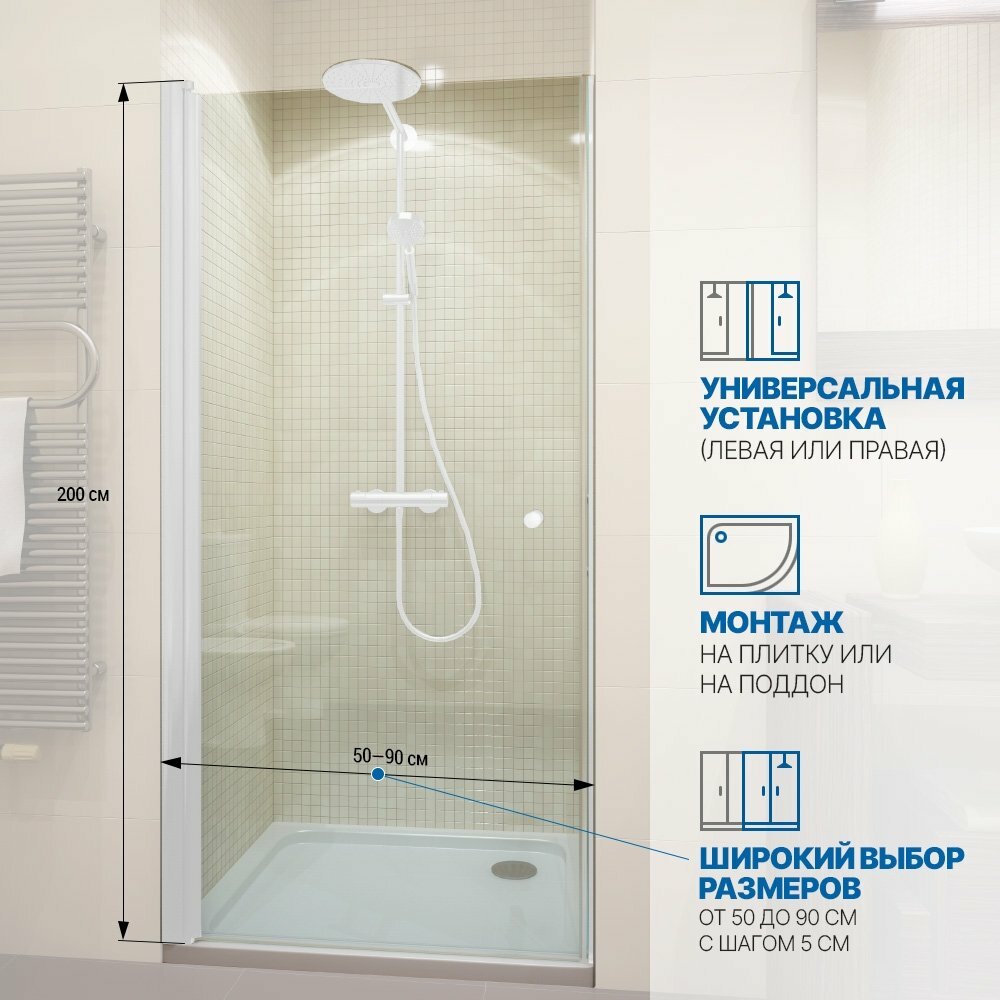 Купить Дверь в душевую нишу GWMPKB020D601T 55x200 см, цвет фурнитуры белый матовый, цвет стекла бесцветный, стекло закаленное 6 мм