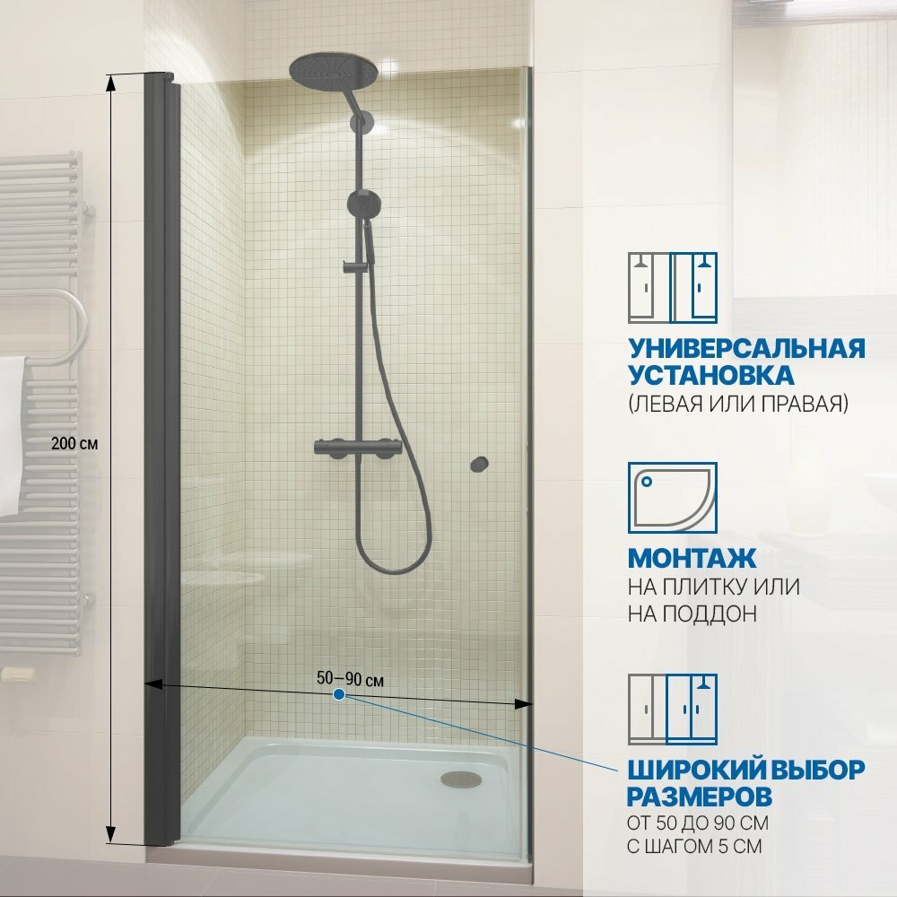 Дверь в душевую нишу GWMPKB020D601T 50x200 см, цвет фурнитуры черный матовый, цвет стекла бесцветный, стекло закаленное 6 мм