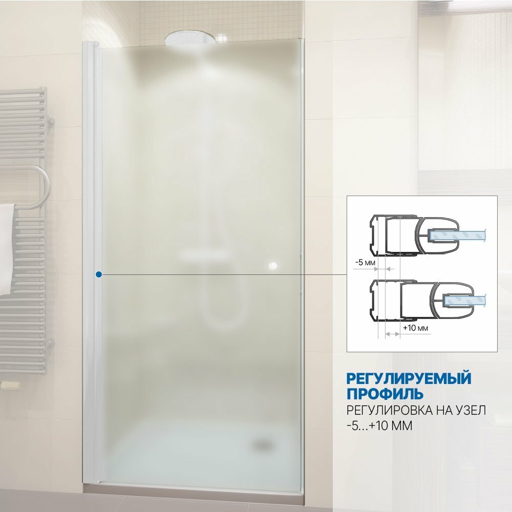 Дверь в душевую нишу GWMPKB020D601T 85x200 см, цвет фурнитуры белый матовый, цвет стекла матовый, стекло закаленное 6 мм