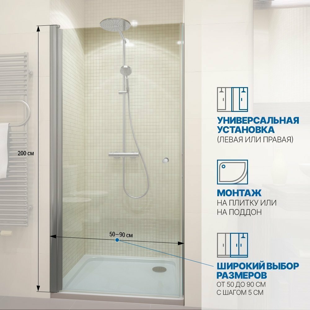 Дверь в душевую нишу GWMPKB020D601 50x200 см, цвет фурнитуры хром матовый, цвет стекла бесцветный, стекло закаленное 6 мм, открывание двери левое / правое