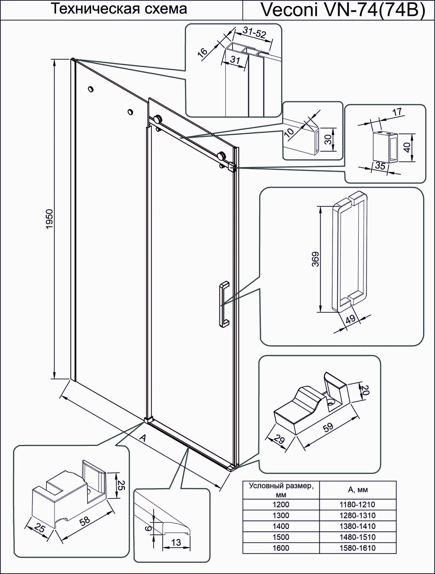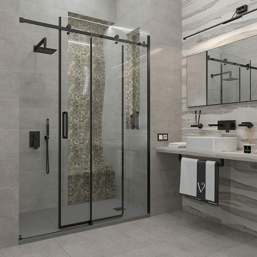 Душевая дверь Veconi VN74B-140-01-C4 1400х1950 мм профиль черный, стекло прозрачное интересное: