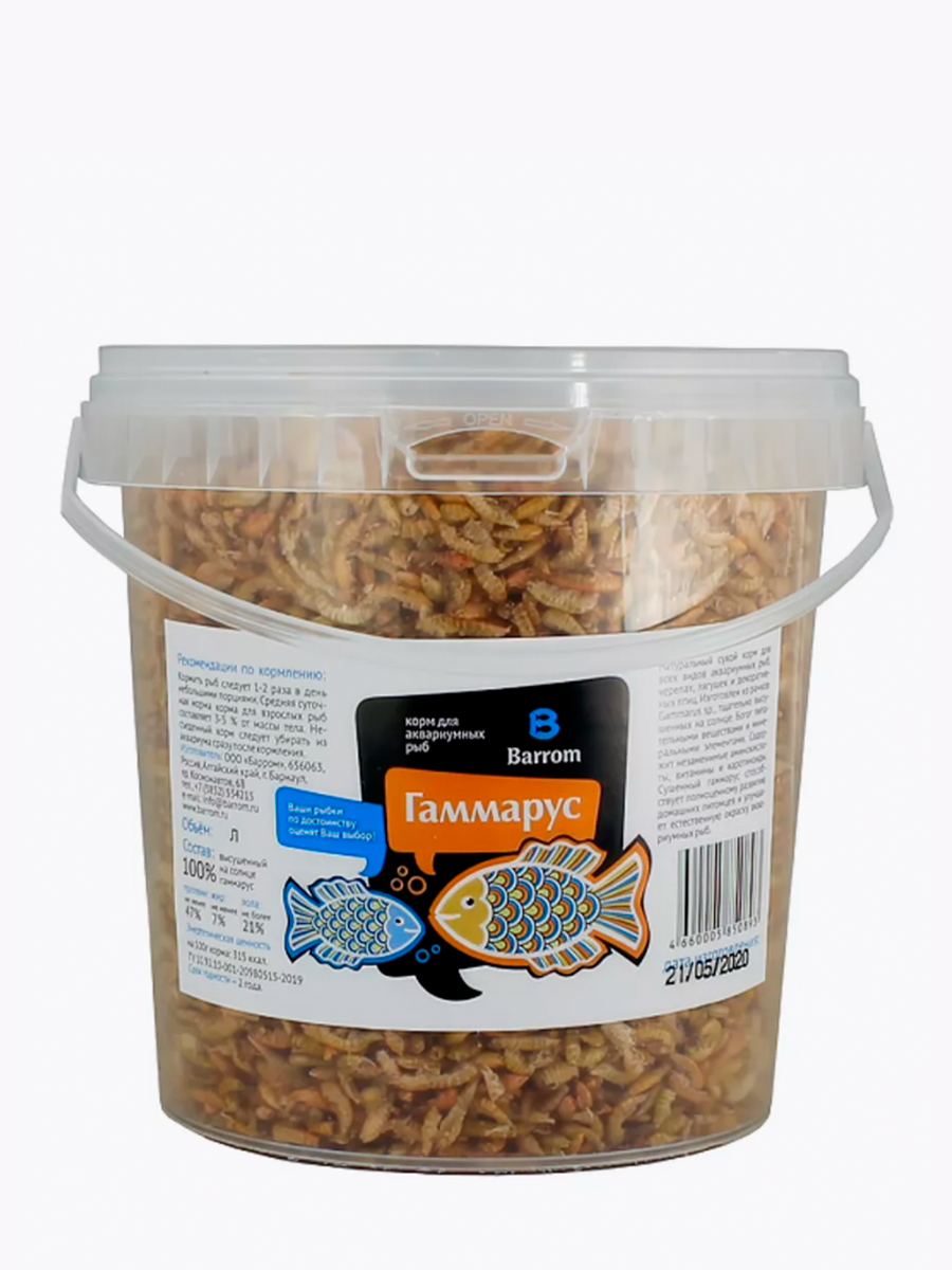 Barrom Корм для рыб Гаммарус тушка, 2 л, ведро / Сухой корм для аквариумных рыб, черепах, лягушек, улиток и декоративных птиц