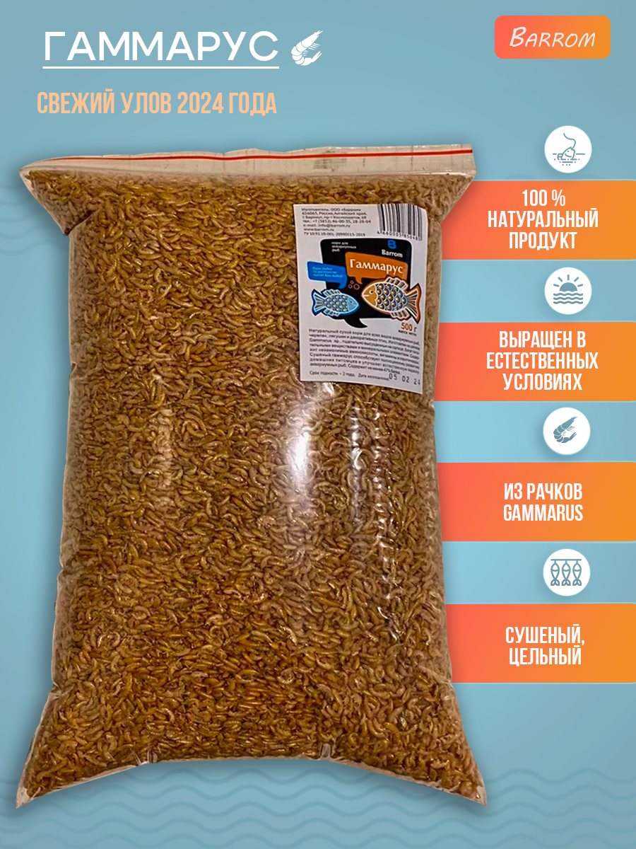 Barrom Корм для рыб Гаммарус тушка, 2 л, ведро / Сухой корм для аквариумных рыб, черепах, лягушек, улиток и декоративных птиц