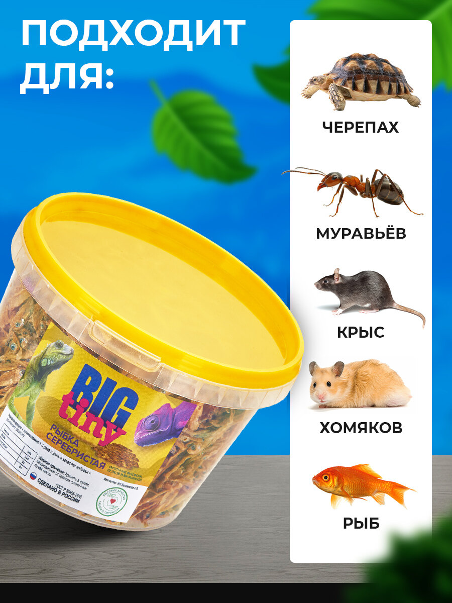 Лакомство Big Tiny, для рептилий, для водных и сухопутных черепах, рыбка сушеная, 1-3см, 95 гр.