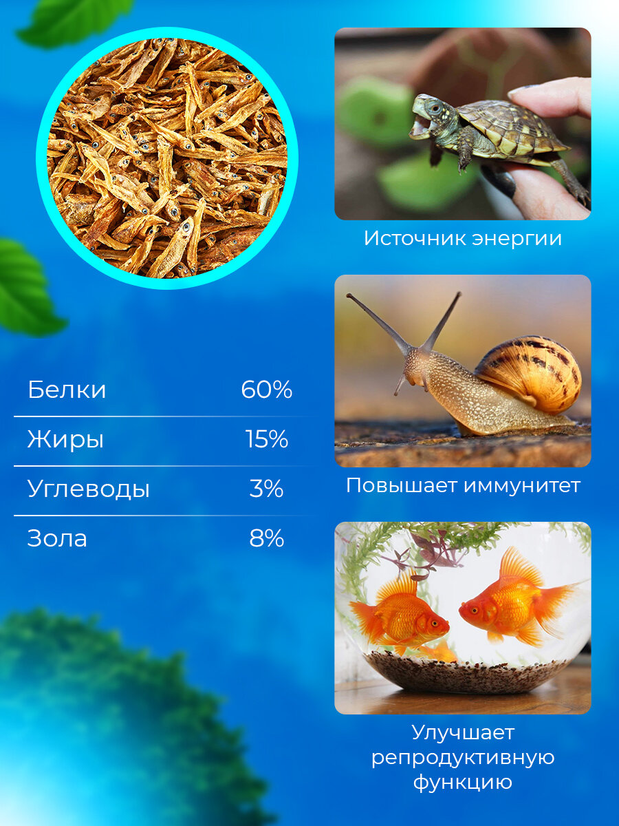 Лакомство для рептилий: рыбка сушеная 1-3 см интересное: