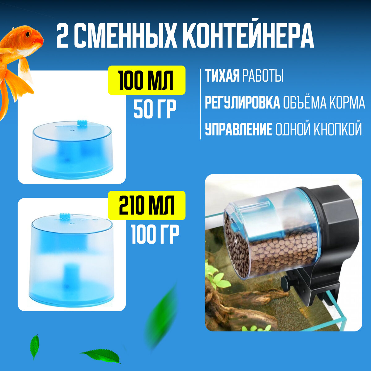 | Дополнительная информация | Два режима работы 12 и 24 часа. В комплекте 2 емкости для корма 100мм и 50мм. |
