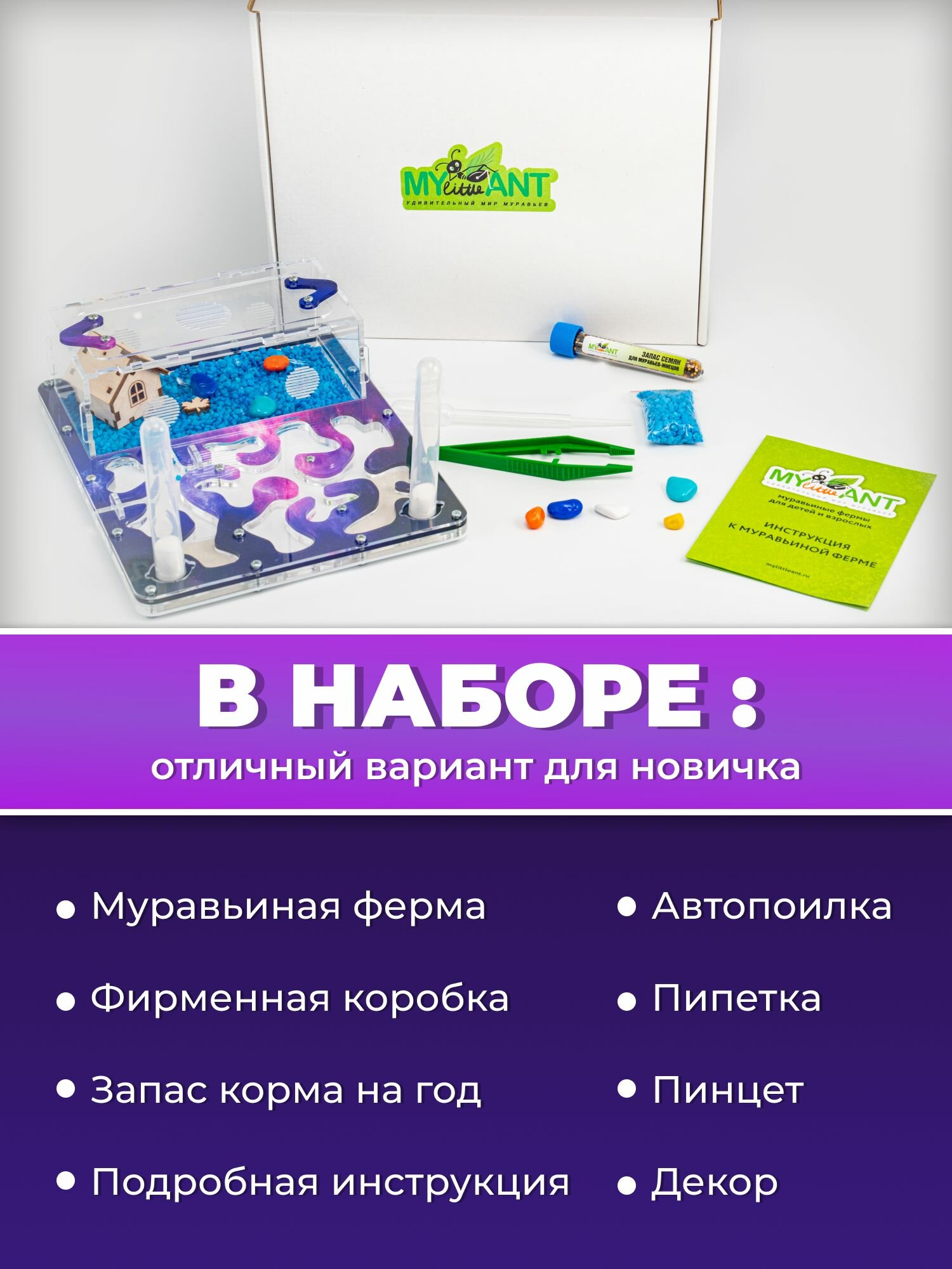Муравьиная ферма 25*19 см полный комплект "космос" интересное:
