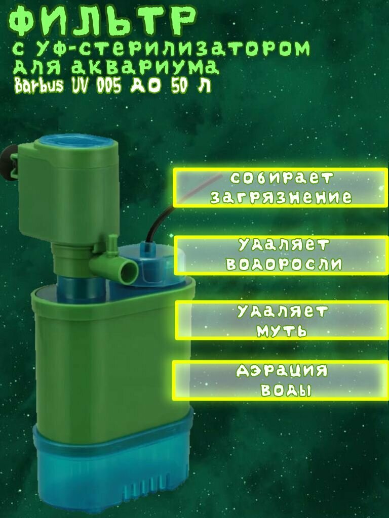 Фильтр с УФ-стерилизатором для аквариума Barbus UV 005 до 50 л интересное: