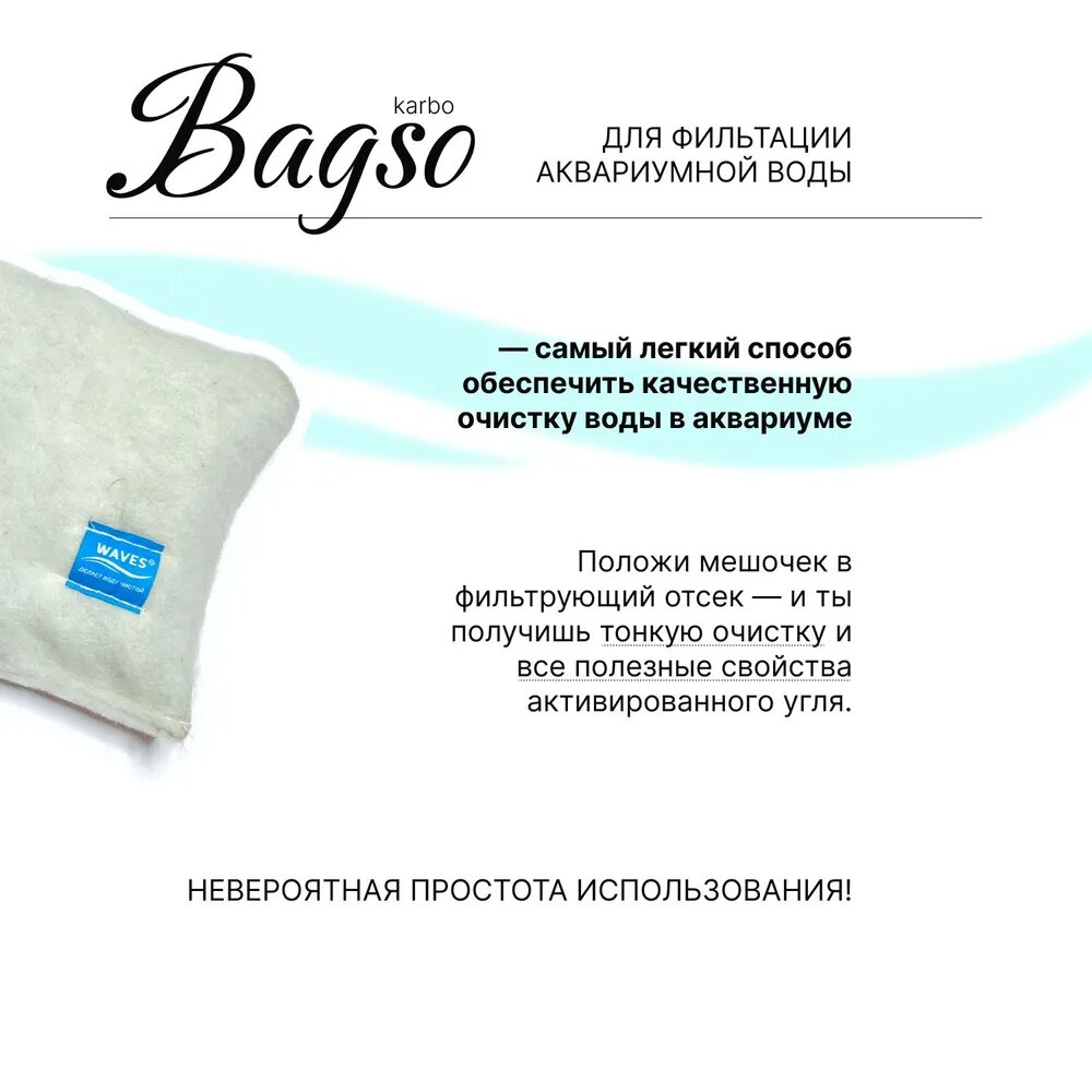 WAVES "Bagso karbo" 2 мешочка из синтепона с активированным углем - наполнители для аквариумного фильтра, 22х17 см