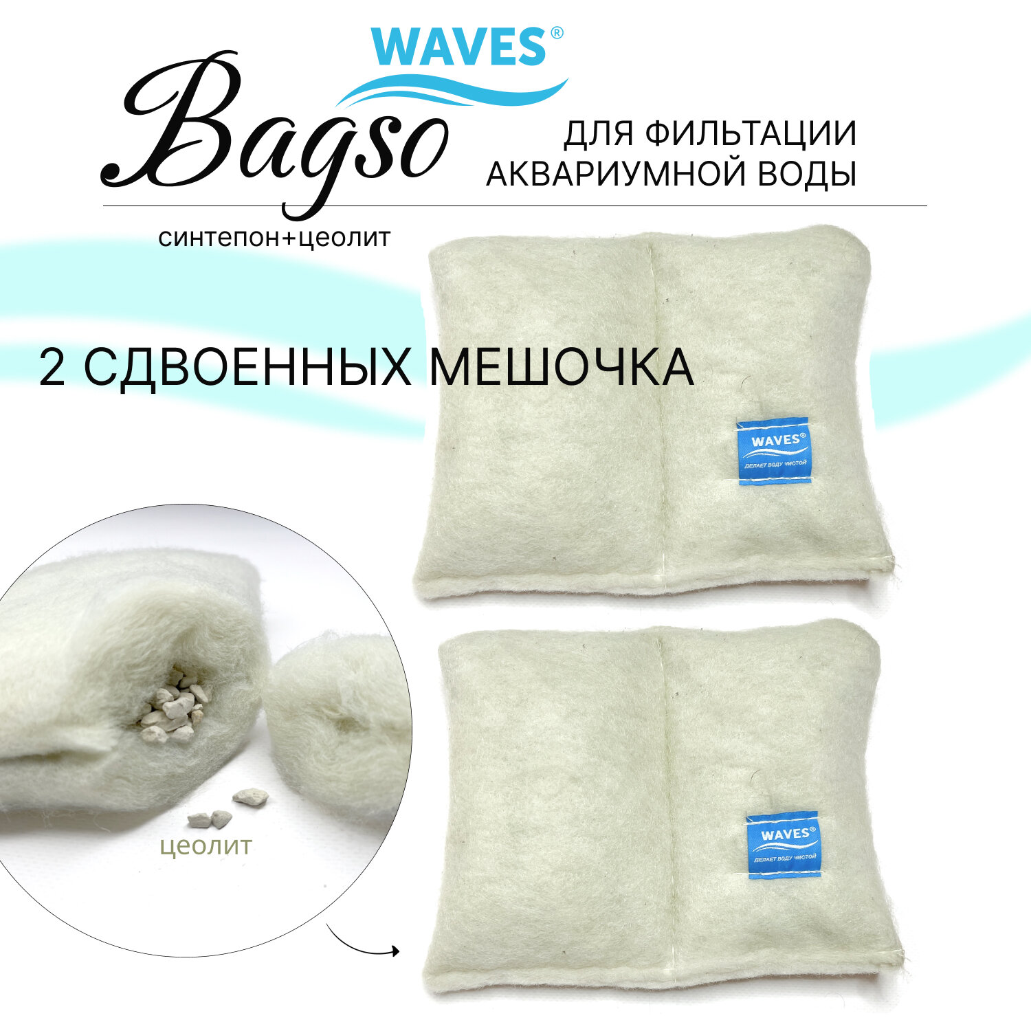 Купить WAVES "Bagso" Двухсекционный мешочек из синтепона с цеолитом - наполнитель для аквариумного фильтра, набор 2 шт, 22х17 см
