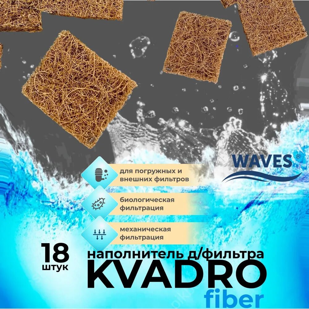 Купить WAVES "KVADRO fiber" Квадратики из кокосового волокна - натуральный наполнитель для аквариумного фильтра, 18 шт.