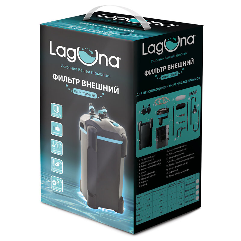 Ниже Вы можете прочитать отзывы на Laguna Aqua Фильтр 1408 внешний, 17Вт, 1400л.ч, до 140л, 230х230х485мм, ознакомится с подробными характеристиками, посмотреть интересные обзоры и фотографии на Laguna Aqua Фильтр 1408 внешний, 17Вт, 1400л.ч, до 140л, 230х230х485мм.