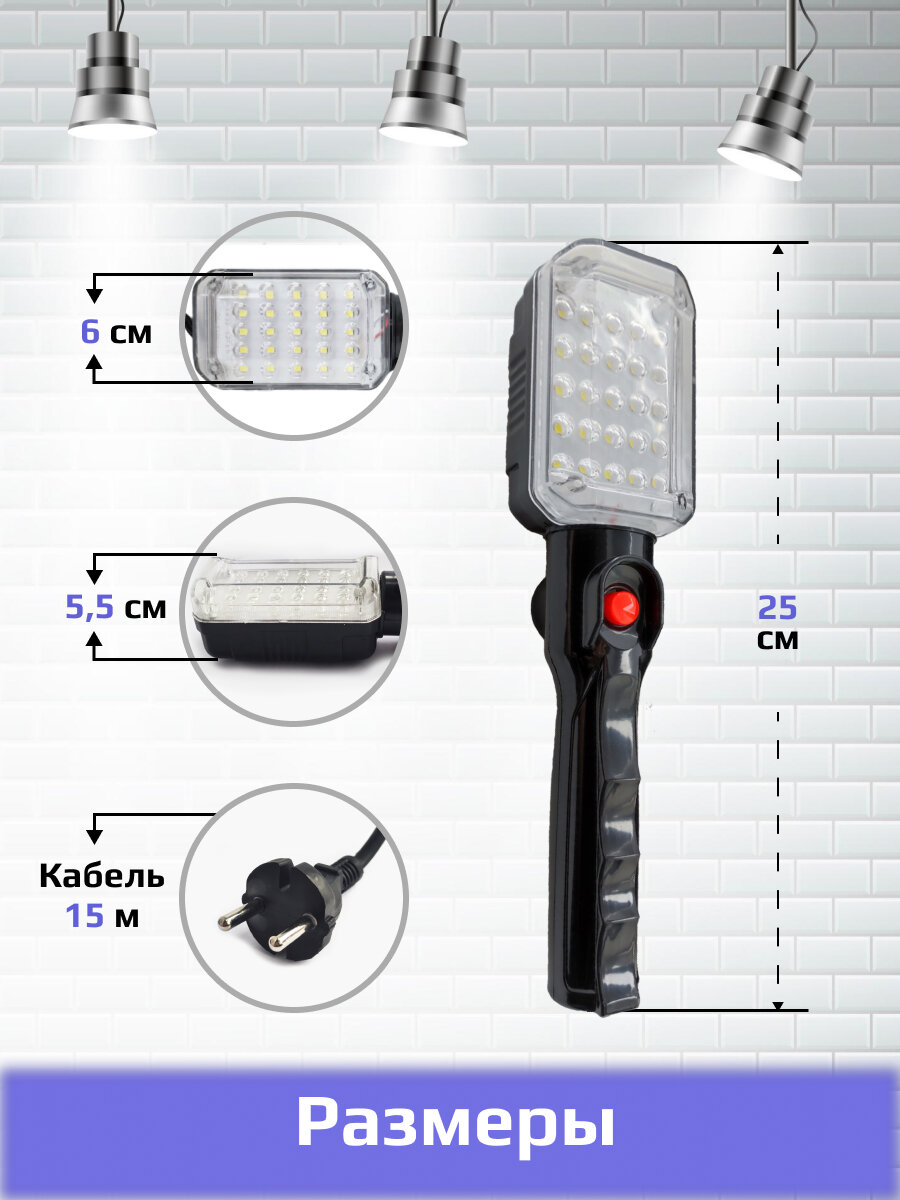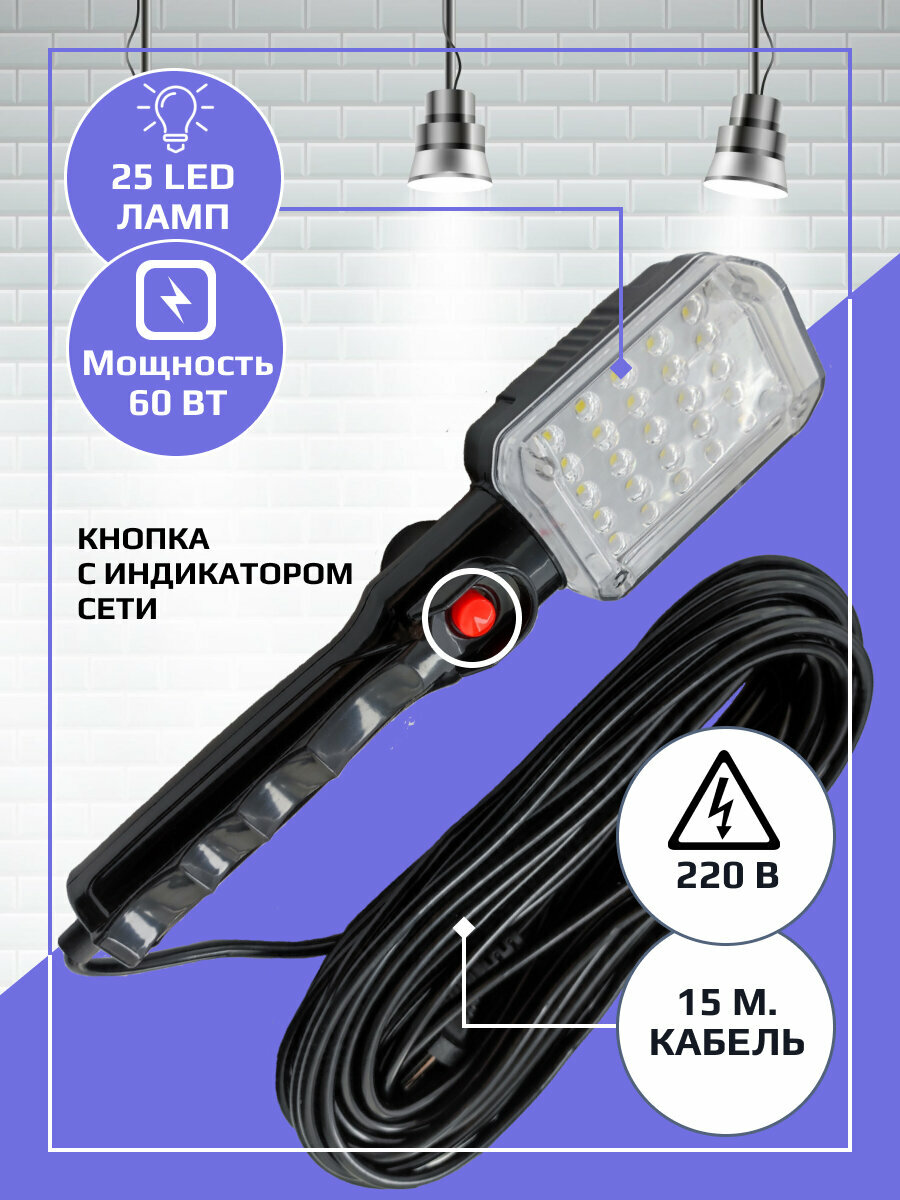 Лампа переносная светодиодная , Переноска-светильник длина кабеля 15 метров, черная интересное: