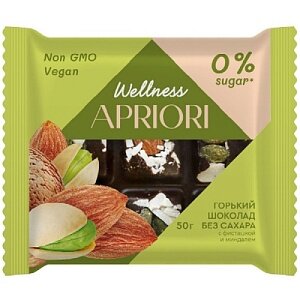 Купить Горький шоколад Apriori Wellness без сахара, с фисташкой и миндалем, 50г