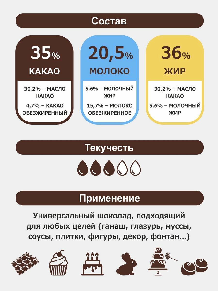 Молочный шоколад с высоким содержанием какао-масла, 35%, 1 кг интересное: