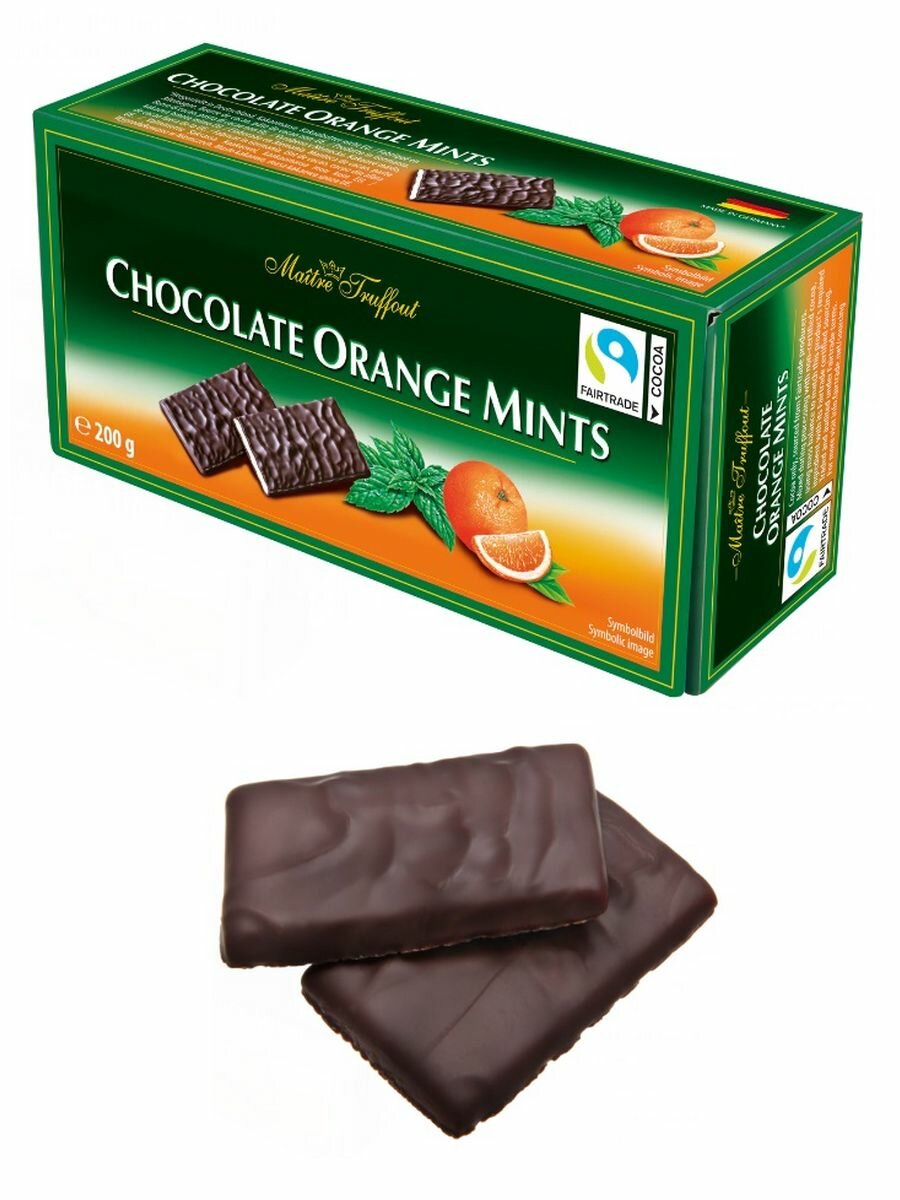 Шоколад Maitre Truffout темный с мятной начинкой и апельсиновым вкусом, порционный, 200 г, 20 шт. в уп.