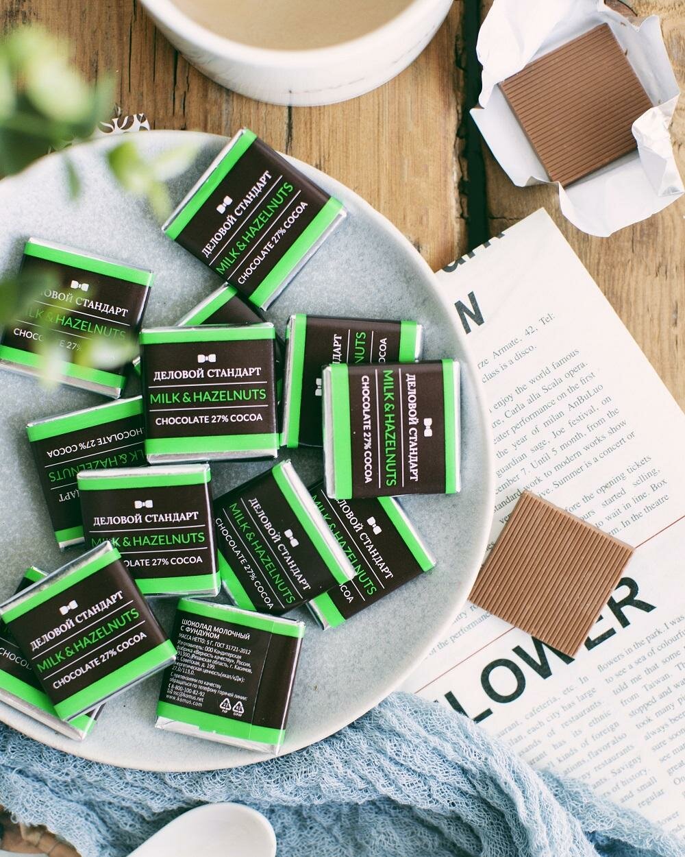 Шоколад порционный Деловой Стандарт Milk&hazelnuts, 5г/80шт интересное:
