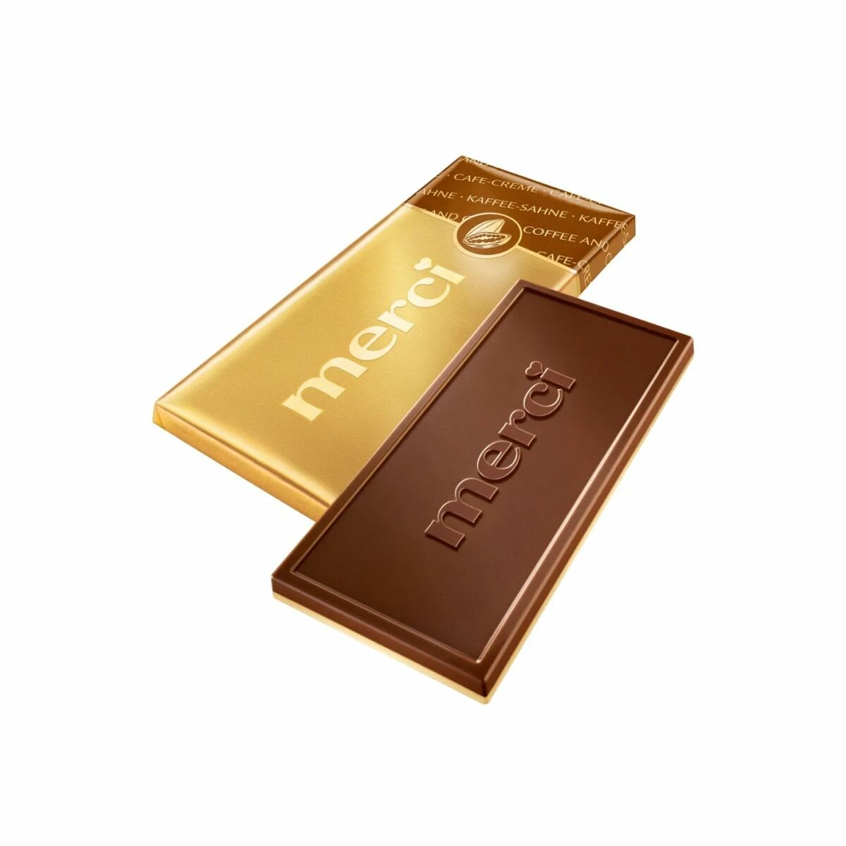 Merci, шоколад молочный с кофе и белым шоколадом, шоколадные плитки 100г. Мерси, произведено в Германии
