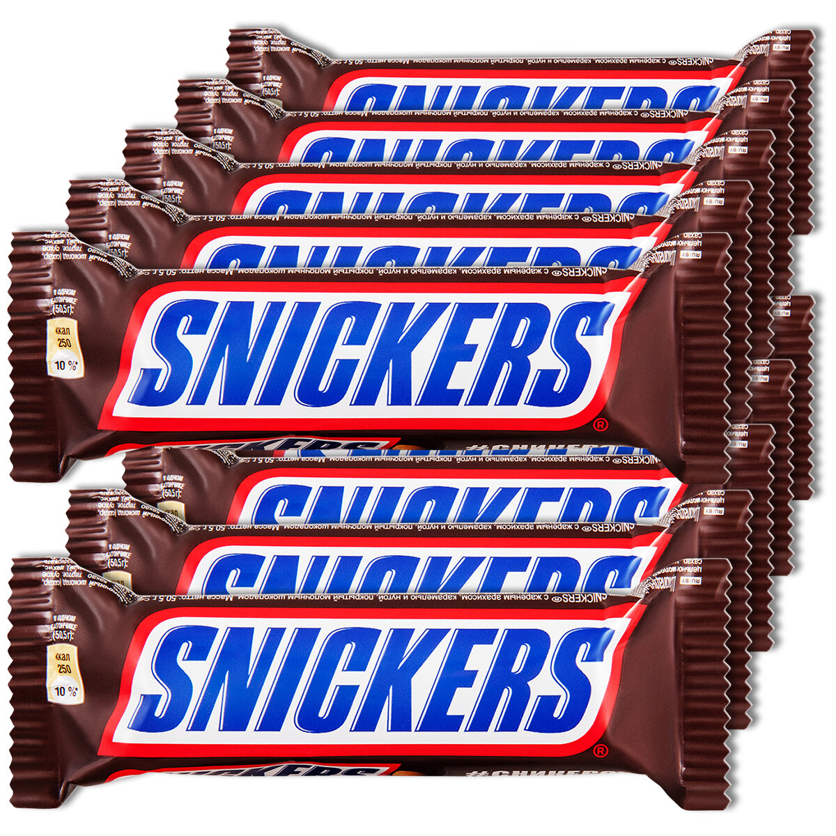 Купить Шоколадный батончик Snickers, 50.5 г, 10 шт.