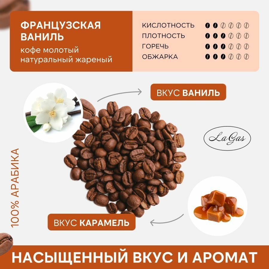 Купить Кофе молотый ароматизированный Французская ваниль 100% арабика, 250 гр