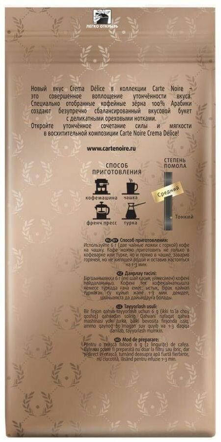 Кофе молотый CARTE NOIRE Crema delice натуральный жареный, 230г интересное: