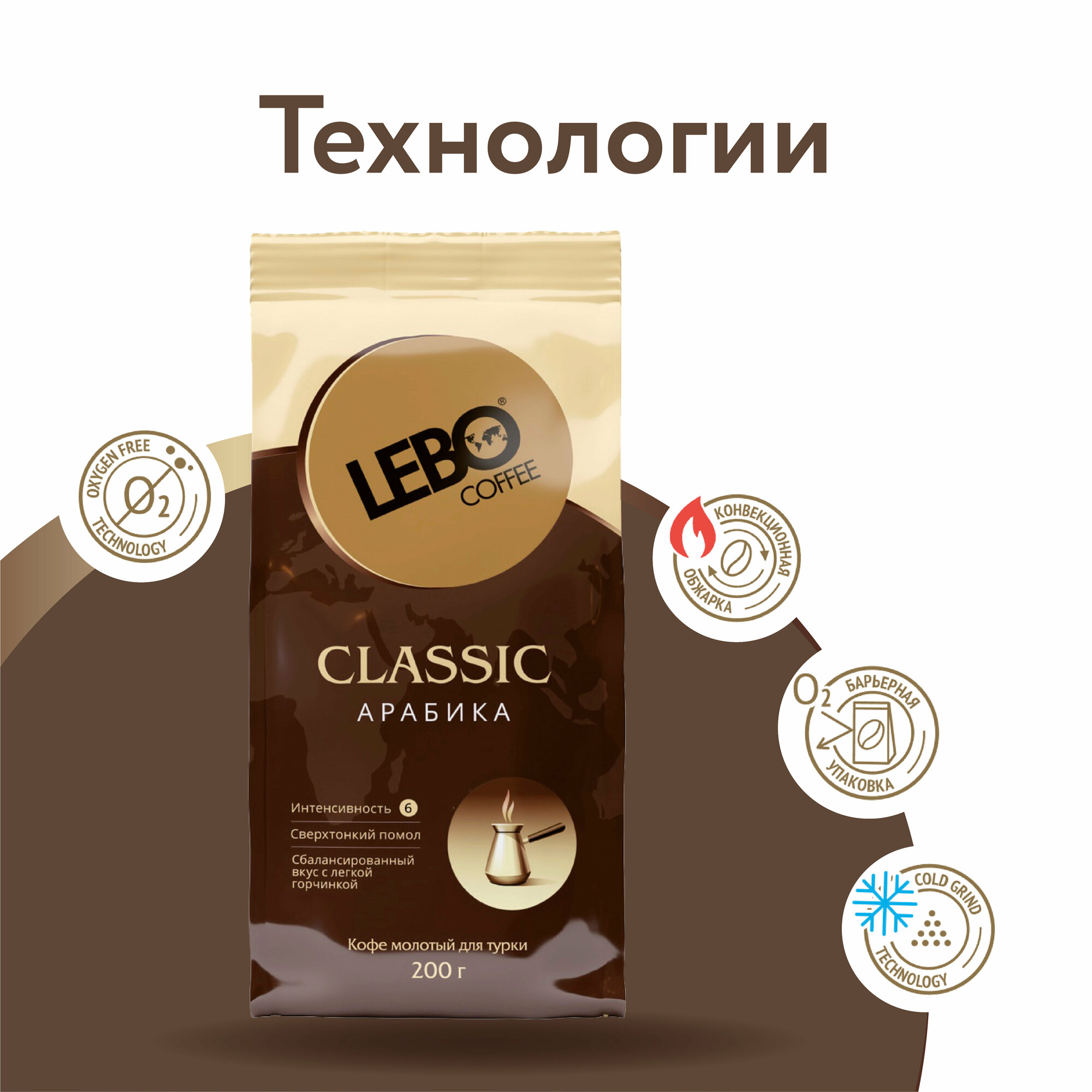 Кофе молотый Lebo Classic Арабика 100% , Приготовление - Турка, 200 г интересное: