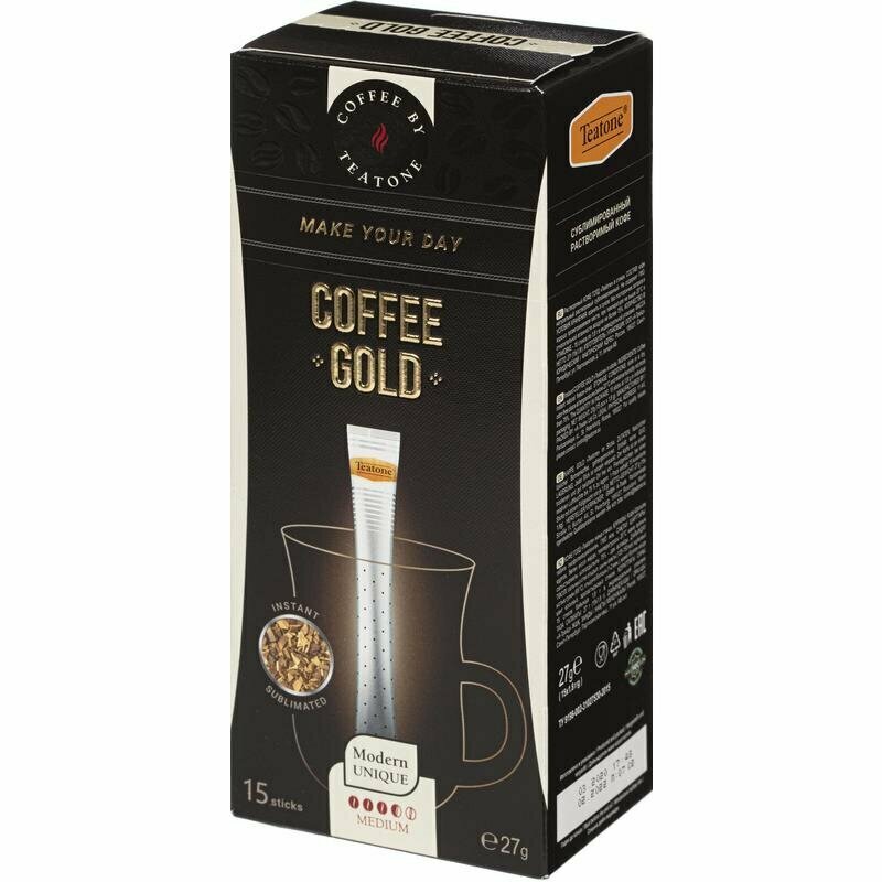 | Комплектация | Кофе растворимый Teatone Coffee Gold в стиках, 1,8 гр x 100 шт |