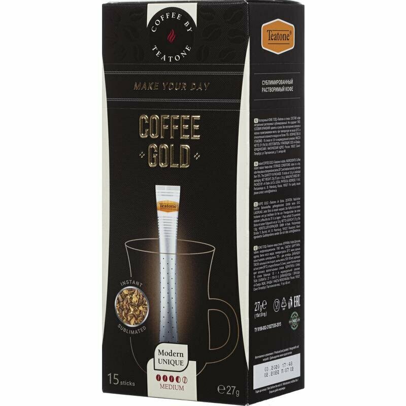 Кофе Gold, TEATONE, растворимый, сублимированный, в стиках, (15 стиков*1,8г)