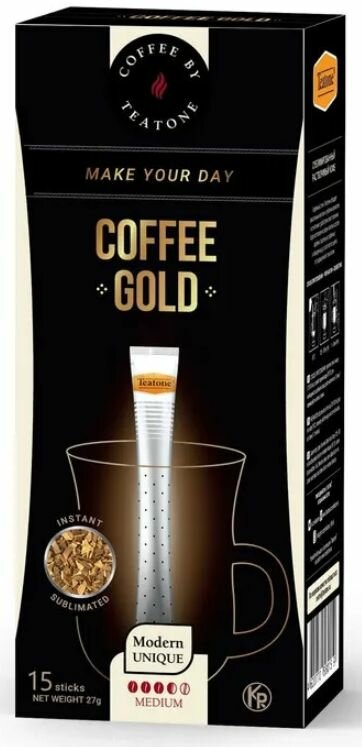 Кофе Gold, TEATONE, растворимый, сублимированный, в стиках, (15 стиков*1,8г)