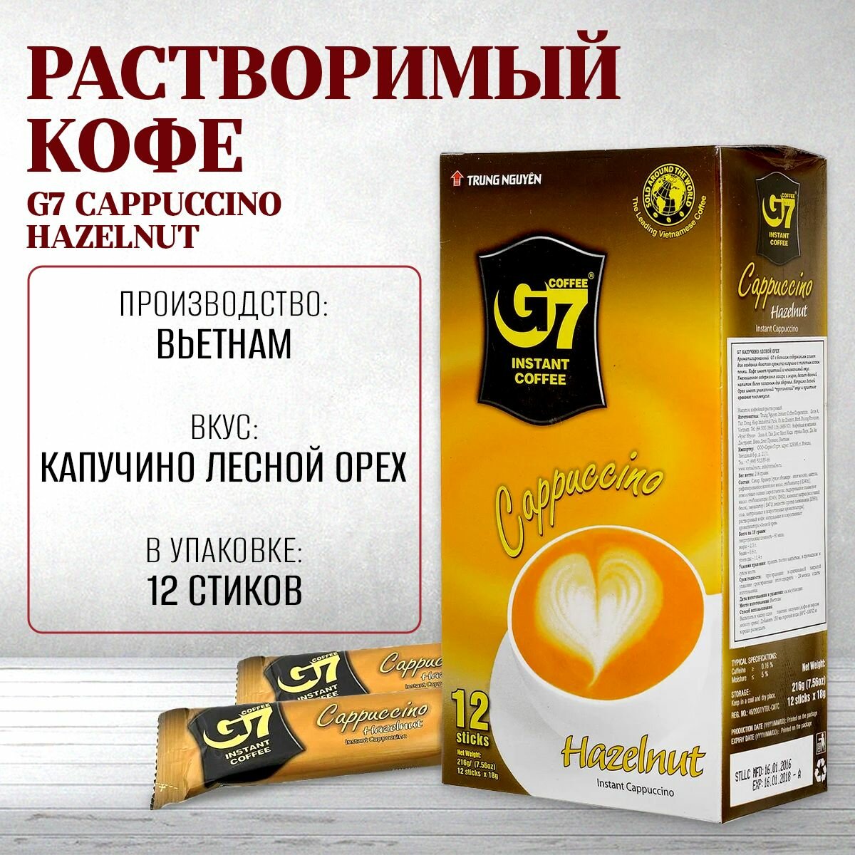 Кофе растворимый вьетнамский 3 в 1 G7 Капучино Лесной орех (Hazelnut) Trung Nguyen, 216г - 12 пак интересное: