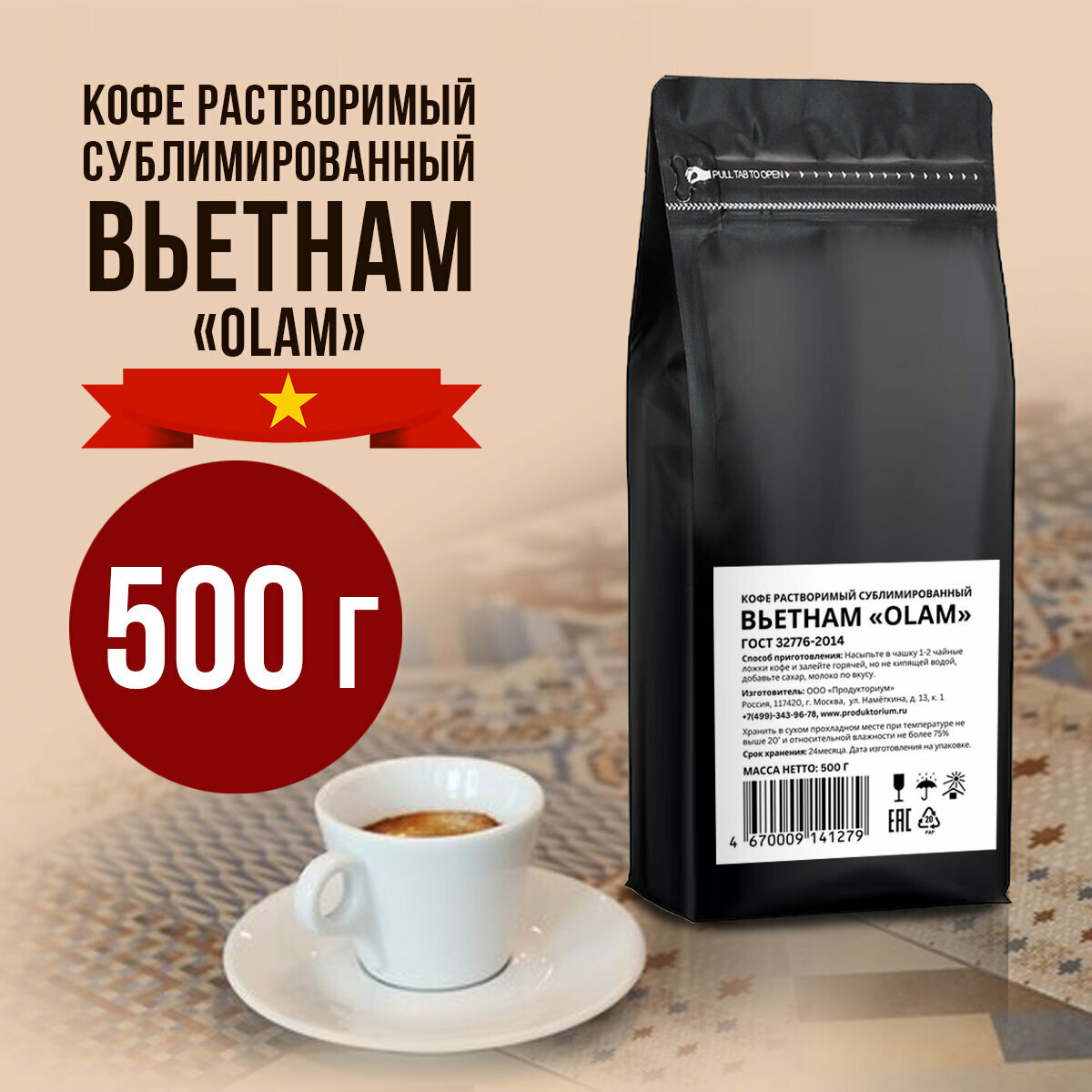 Кофе растворимый Вьетнам "Olam", сублимированный, 500грамм пакет интересное: