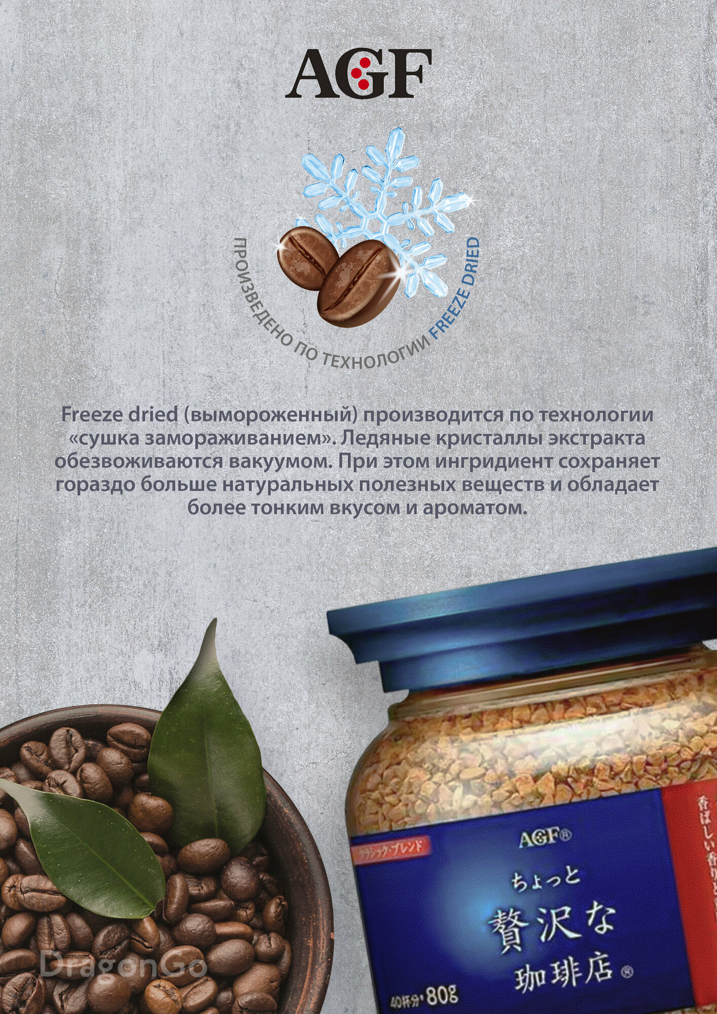 Кофе растворимый AGF LUXURY CLASSIC, с/б Япония 80 г интересное: