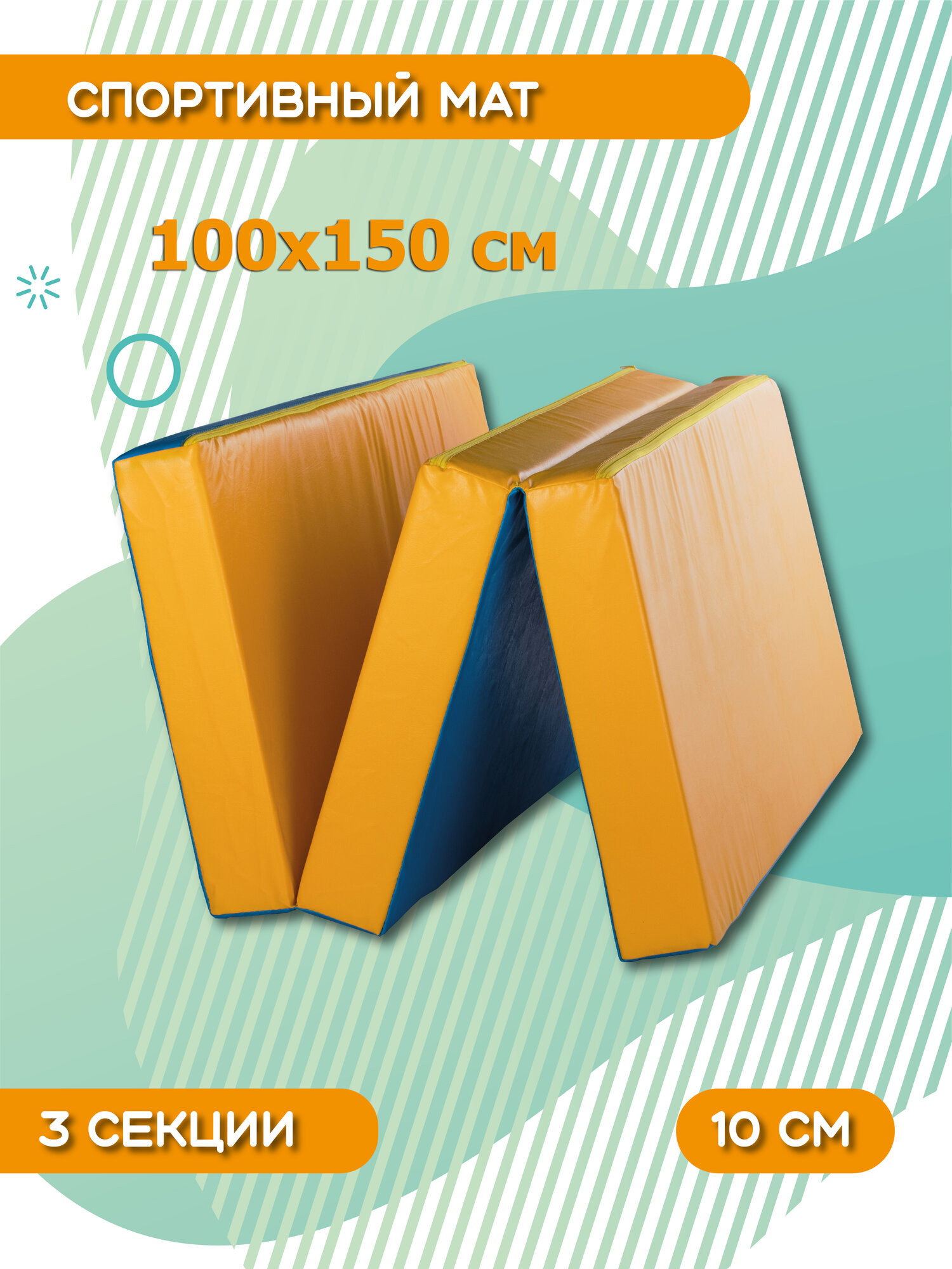 Мат гимнастический складной спортивный для шведской стенки детский 3 секции 100х150х10 см, Цвет синий/желтый интересное: