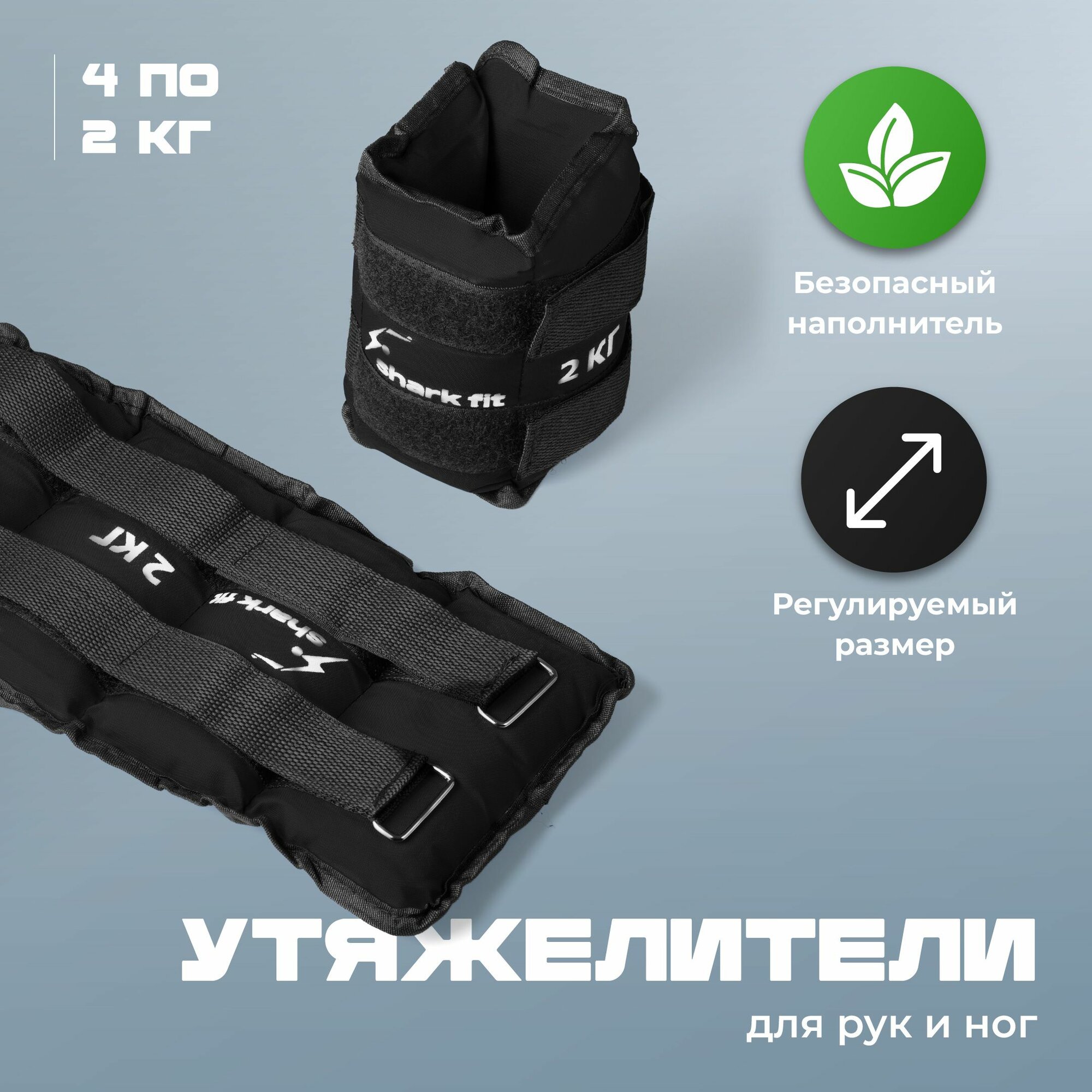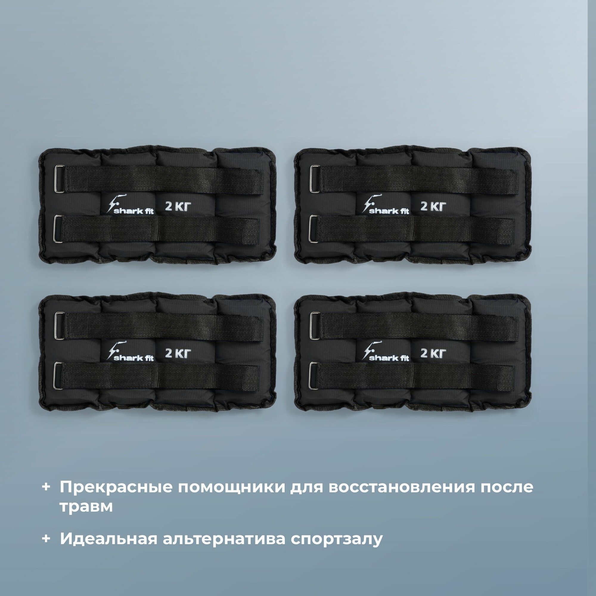 Утяжелители для ног и рук спортивные Shark Fit, Грузы для фитнеса и спорта 2 кг, 4 шт, черный интересное: