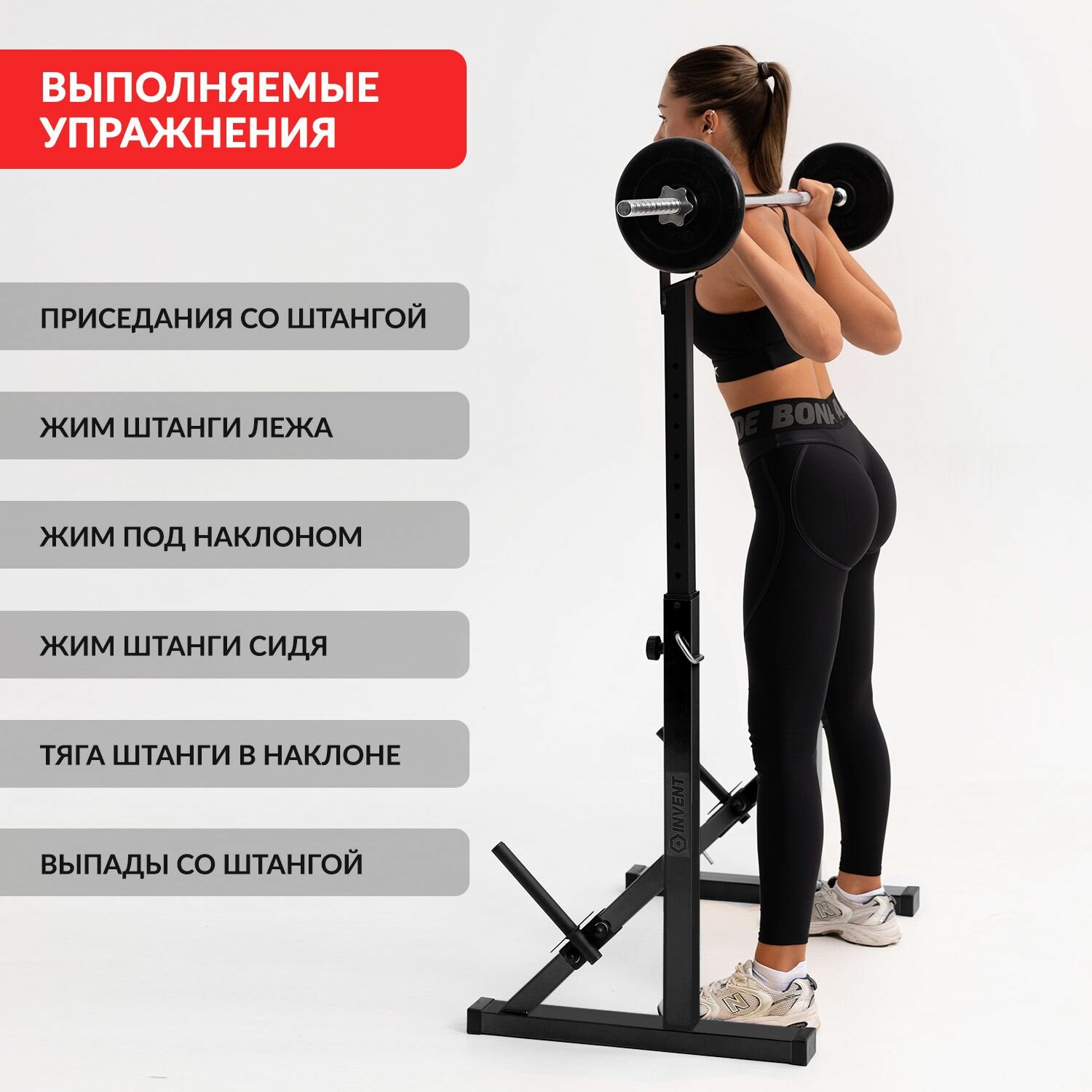 Стойка для штанги без страховки металлическая, подставка под штангу с системой хранения дисков INVENT ST-01 интересное: