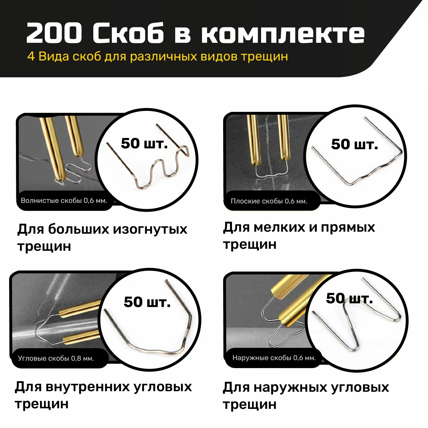 | Комплектация | Паяльник для пластика - 1 шт., скобы для пайки - 200 шт., кейс для хранения - 1 шт., инструкция - 1 шт. |