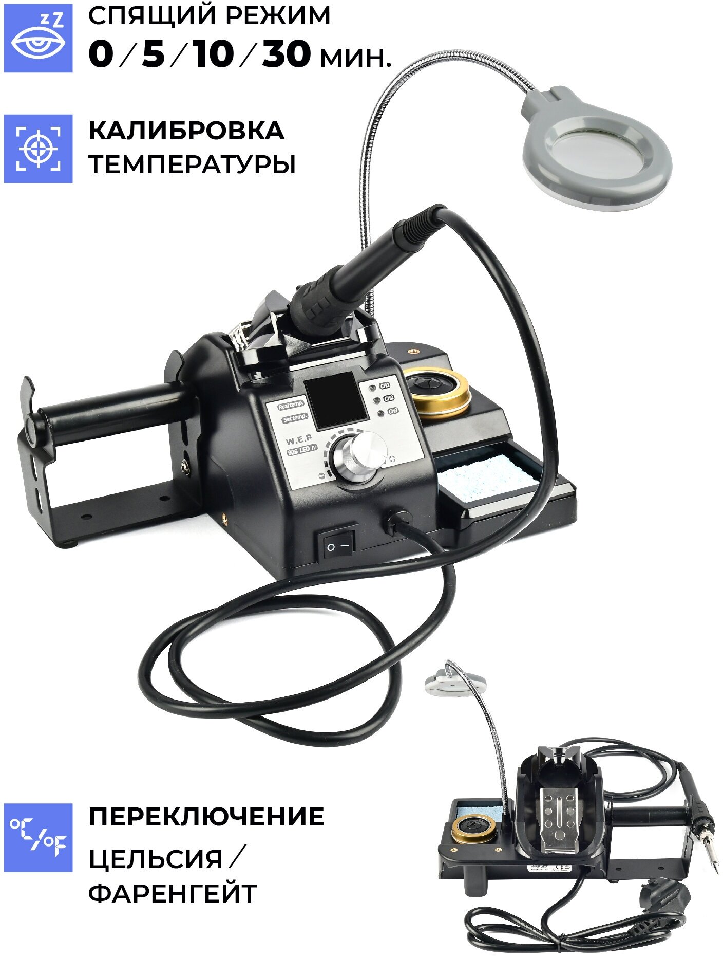 Цифровой паяльник 6 в 1 с регулировкой температуры и дисплеем 130 Вт W.E.P 926LED-IV/Зажим плат третья рука с паяльником и лупой интересное: