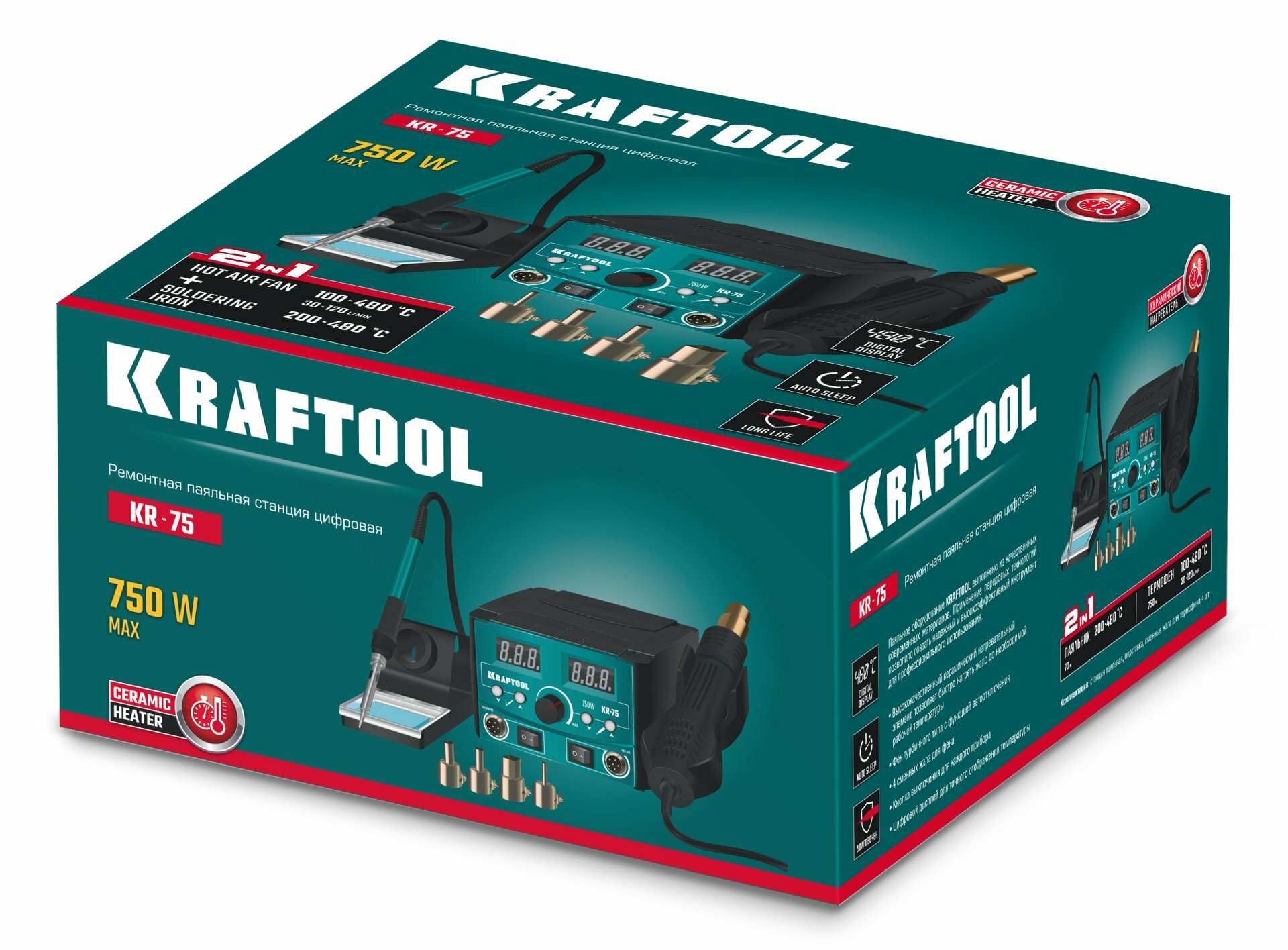 Купить KRAFTOOL KR-75, 2-в-1 100-480°С 750 Вт, Ремонтная паяльная станция (55340)