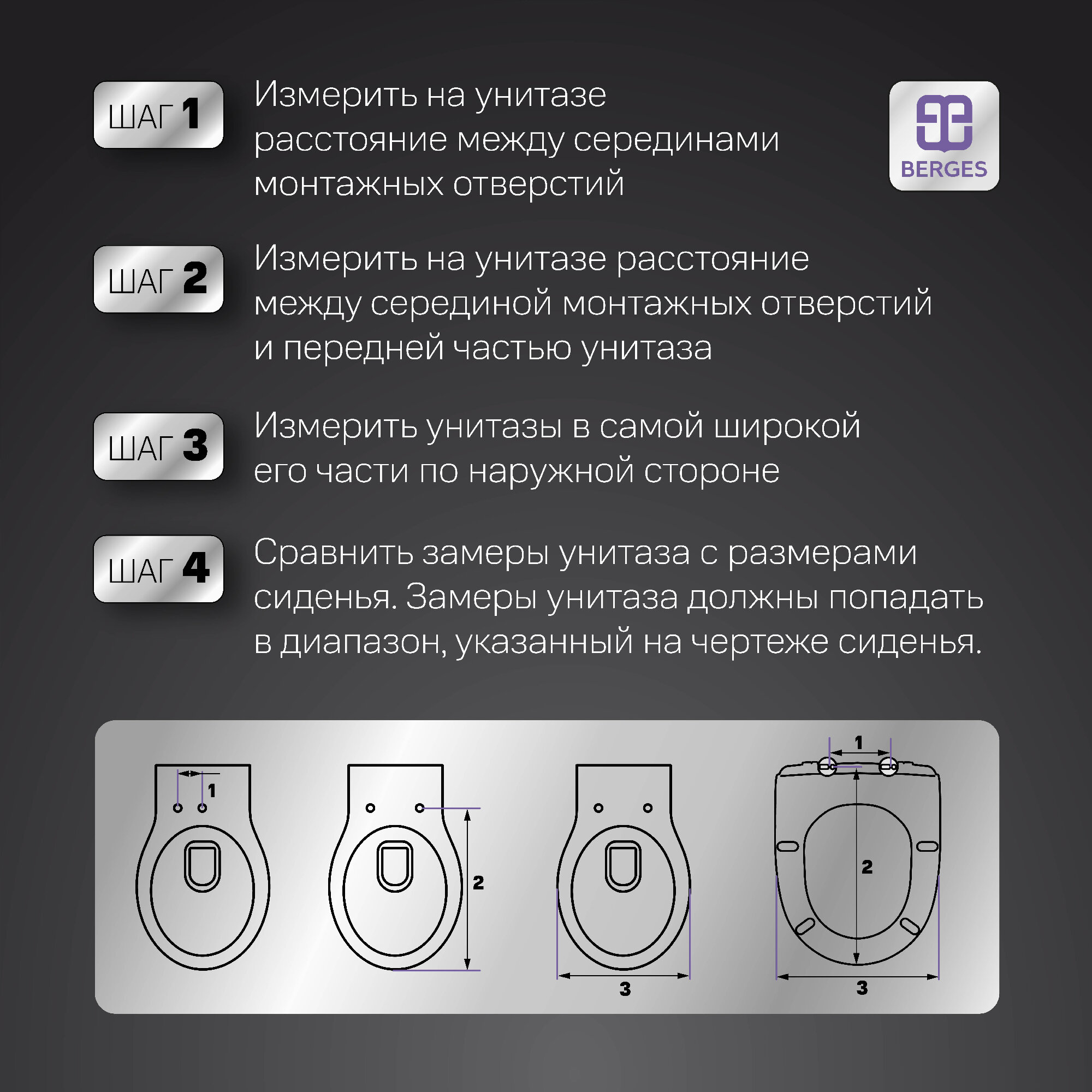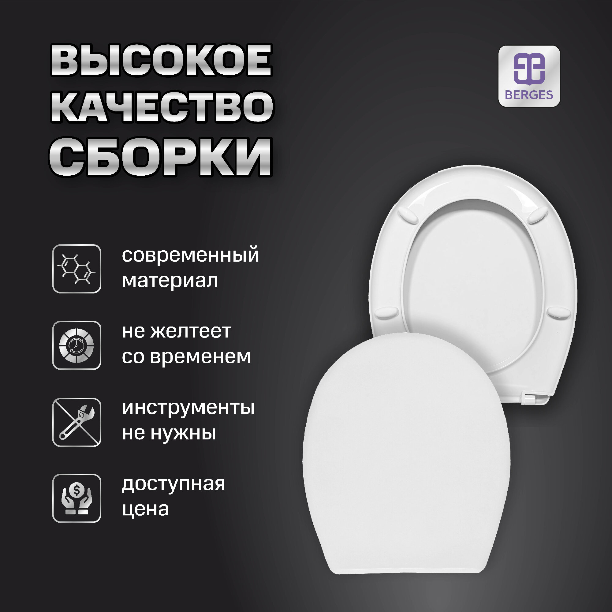 Сиденье для унитаза BERGES с крышкой и креплениями