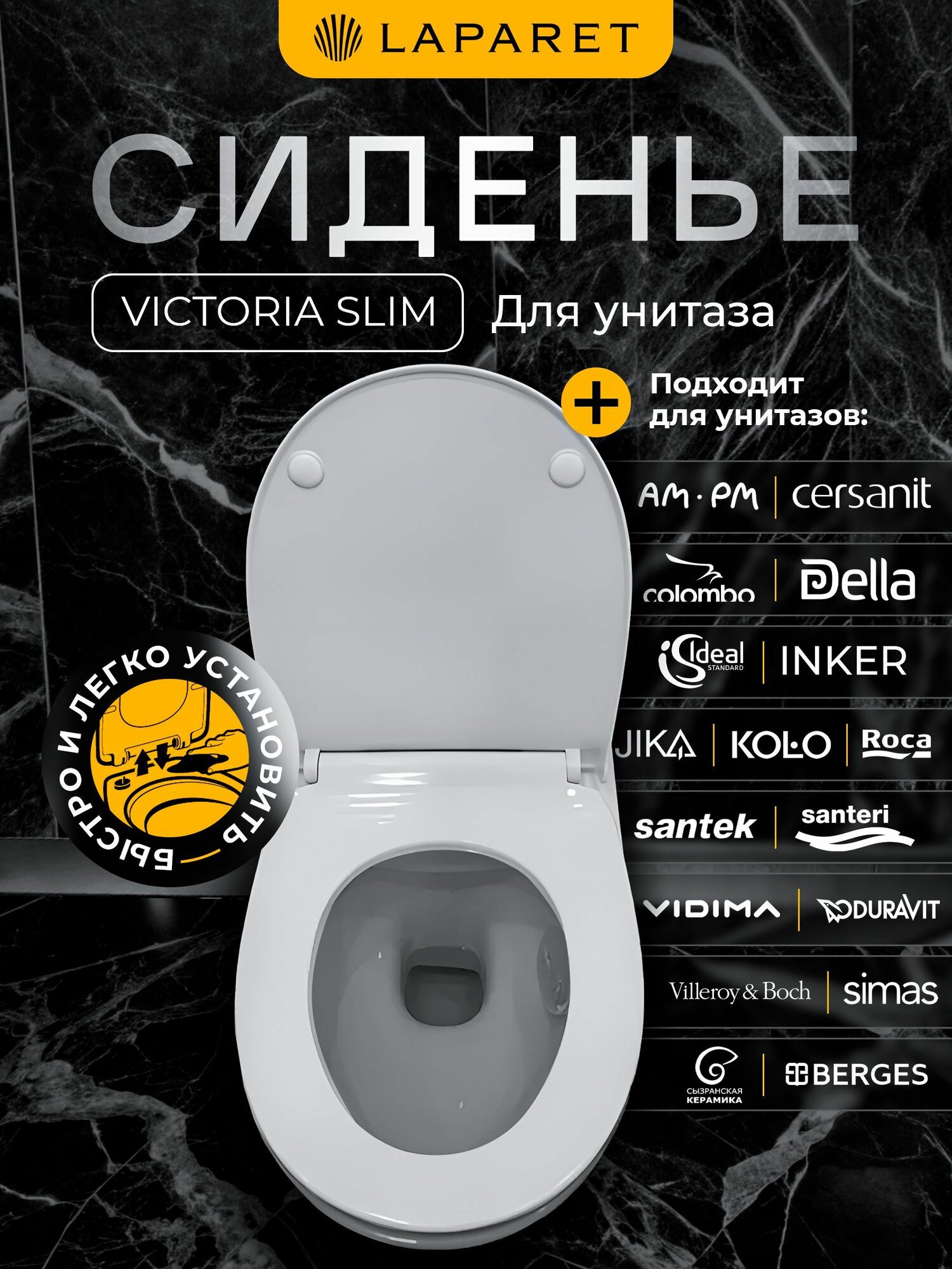 СохранитьСиденье Laparet Victoria Slim для унитаза, дюропласт, с микролифтом,быстросъемное ультратонкое (крепление металл,) ,цвет белый интересное: