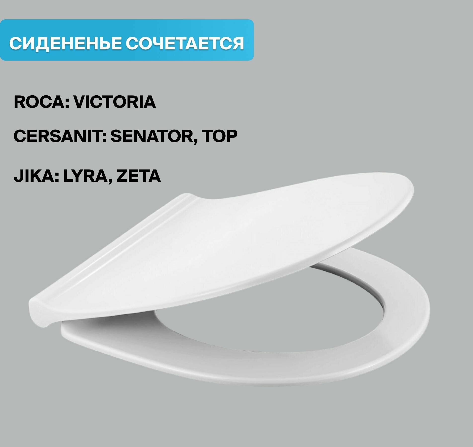 | Дополнительная информация | Оснащено микролифтом для плавного и бесшумного опускания крышки. Совместимость с Laufen: Pro, Form; Vitra: S50 |