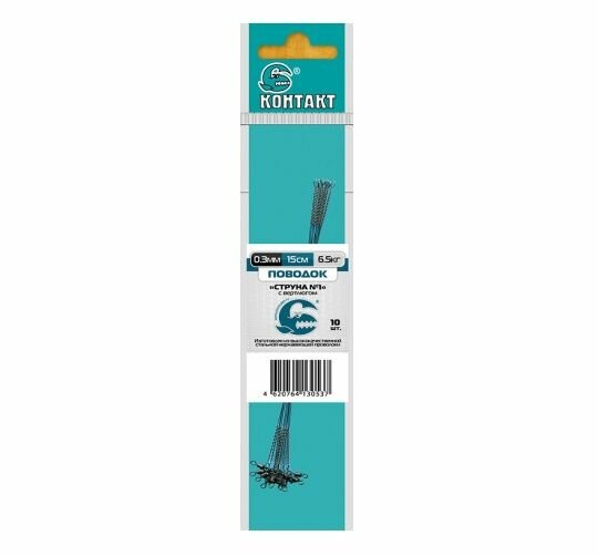 Поводок Контакт "Струна №1" с вертлюгом, 0.3мм, 15см, 6.5кг, 10шт.