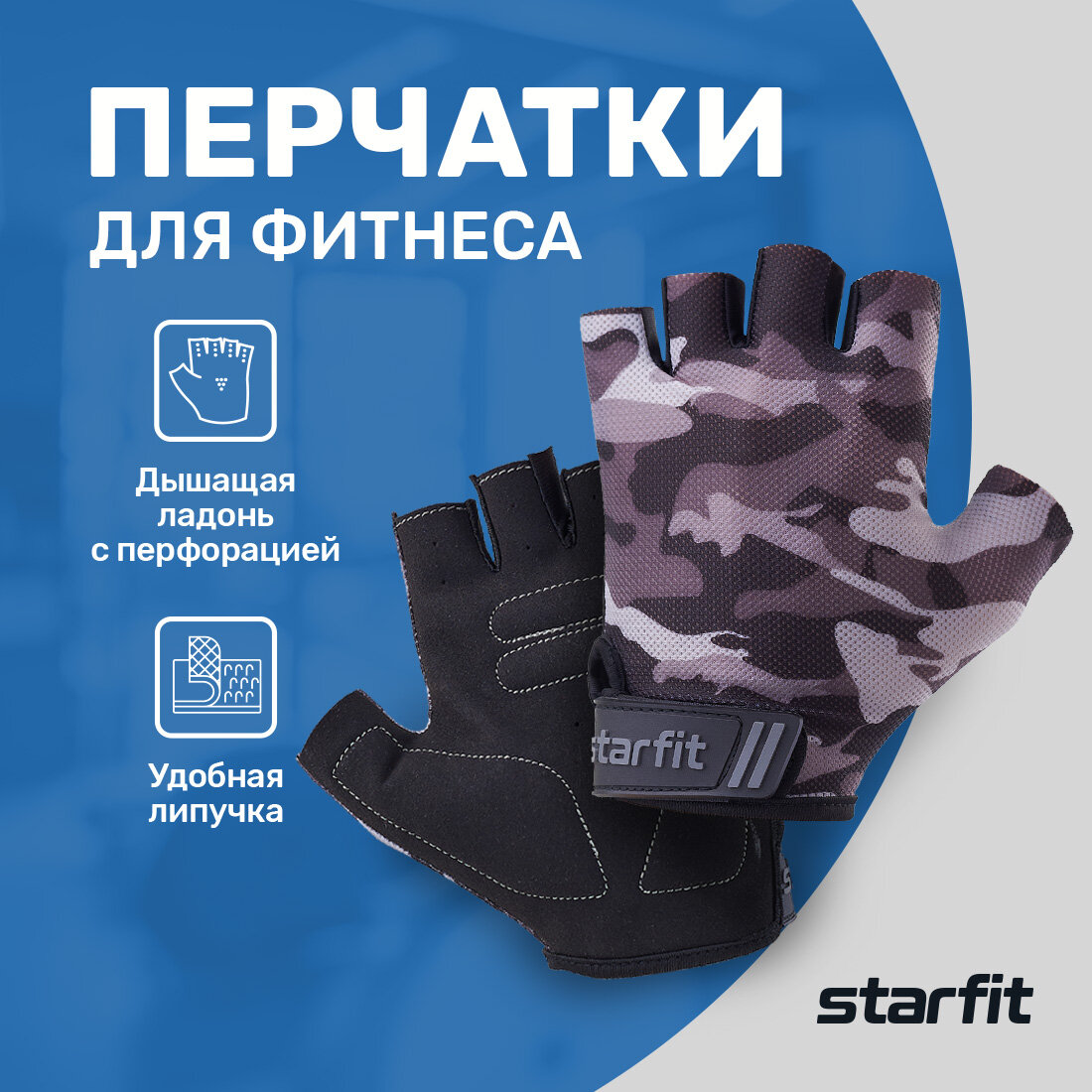 Перчатки для фитнеса STARFIT WG-101, серый камуфляж (S)