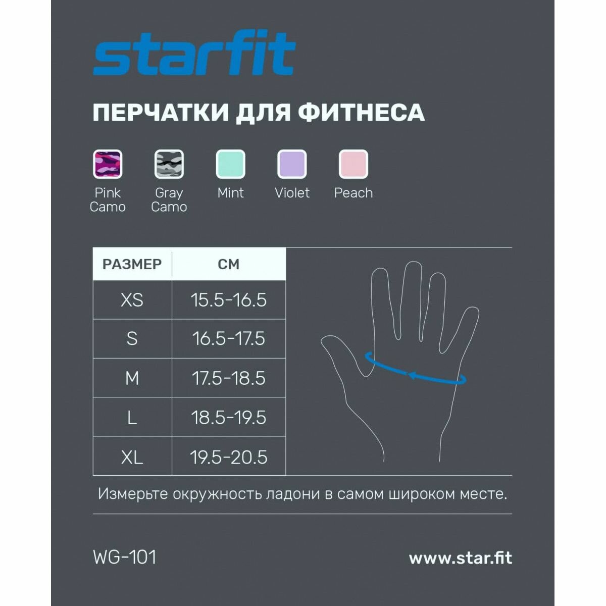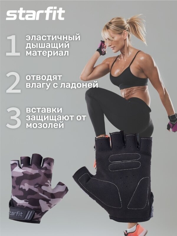 Купить Перчатки для фитнеса STARFIT WG-101, серый камуфляж (S)